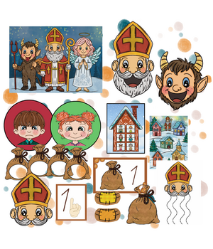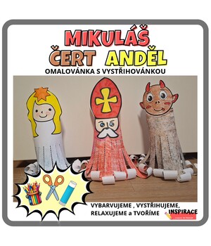Mikuláš, čert, anděl - omalovánka s vystřihovánkou