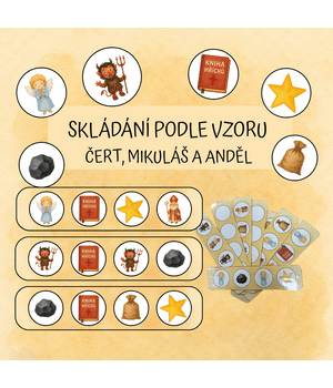 Skládání obrázků podle vzoru - Mikuláš, čert a anděl