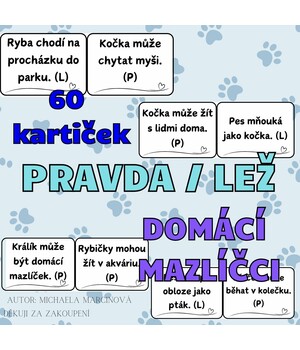 DOMÁCÍ MAZLÍČCI - pravda/lež - 60 kartiček