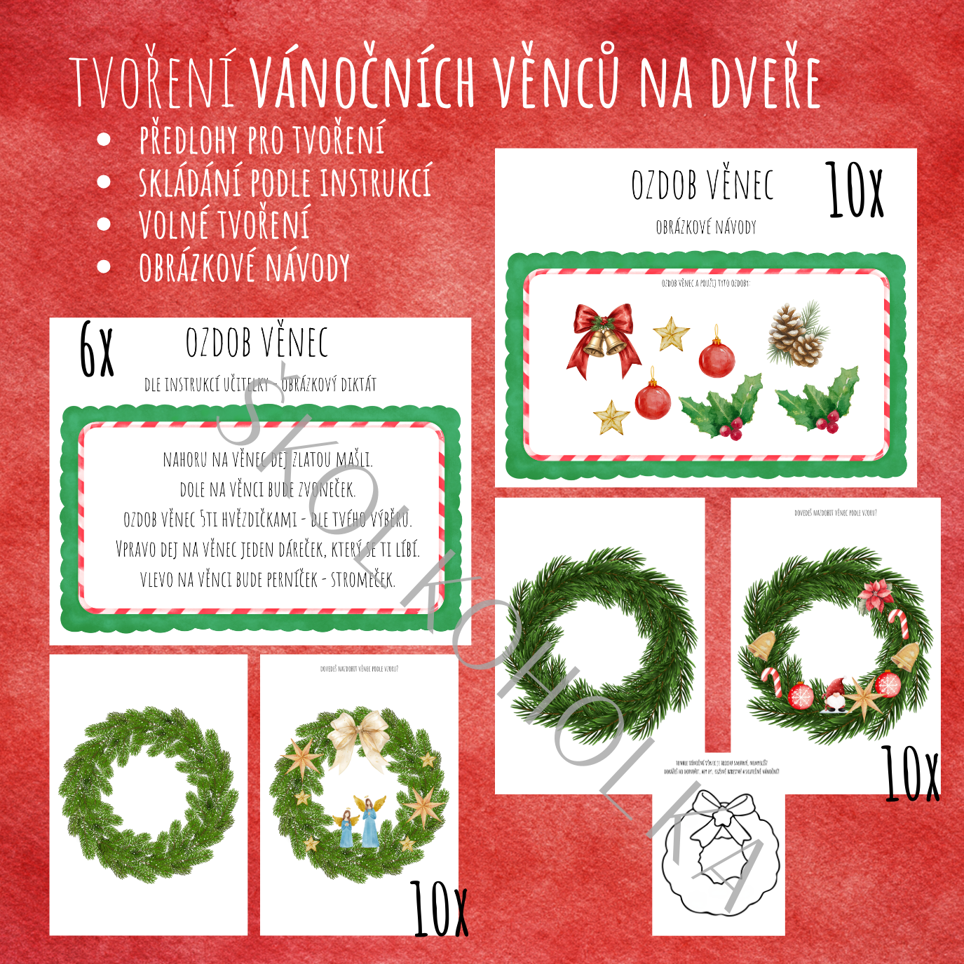 - Obrázkový návod: Děti zdobí věnec podle kroků v návodu, čímž trénují logické myšlení a posloupnost.