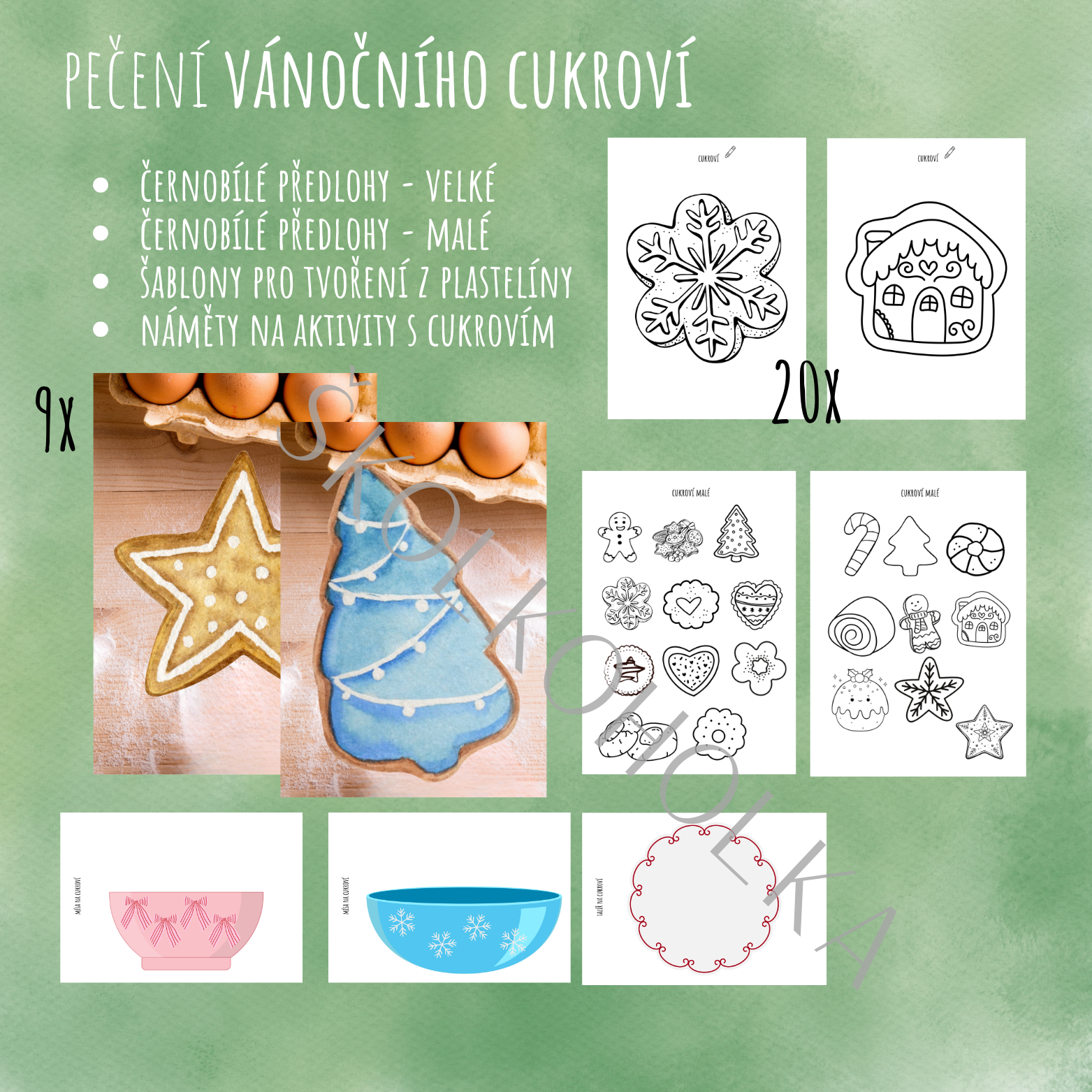 - Černobílé předlohy: Velké a malé černobílé cukroví, které lze využít pro velké množství aktivit