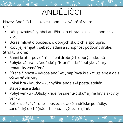 ✅ Ideální pro adventní období – propojuje laskavost, pohyb, tvoření i klidné rituály, aby si děti andělskou tématiku opravdu prožily.