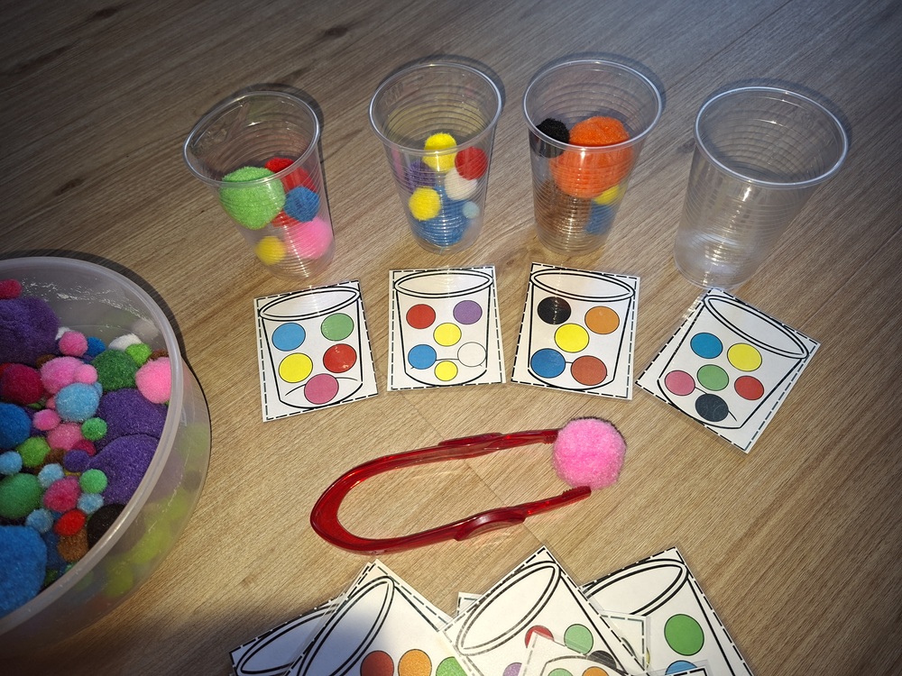 Barevné bambulky jsou skvělý materiál pro rozvoj předmatematických dovedností u dětí – jsou měkké, barevné a lákavé.