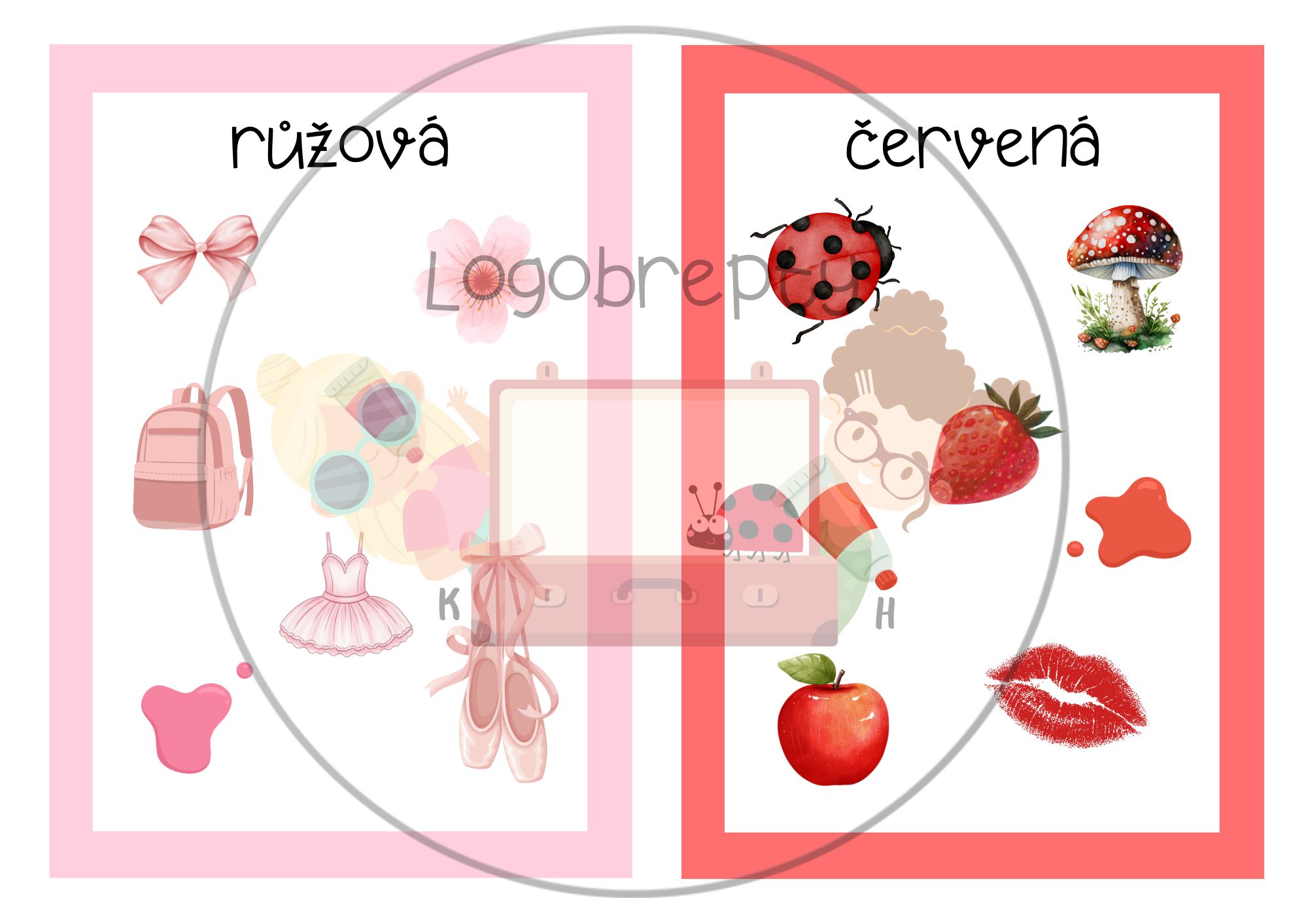 - Barvy duhy – poznávání, pojmenovávání a řazení barev v pořadí duhy.