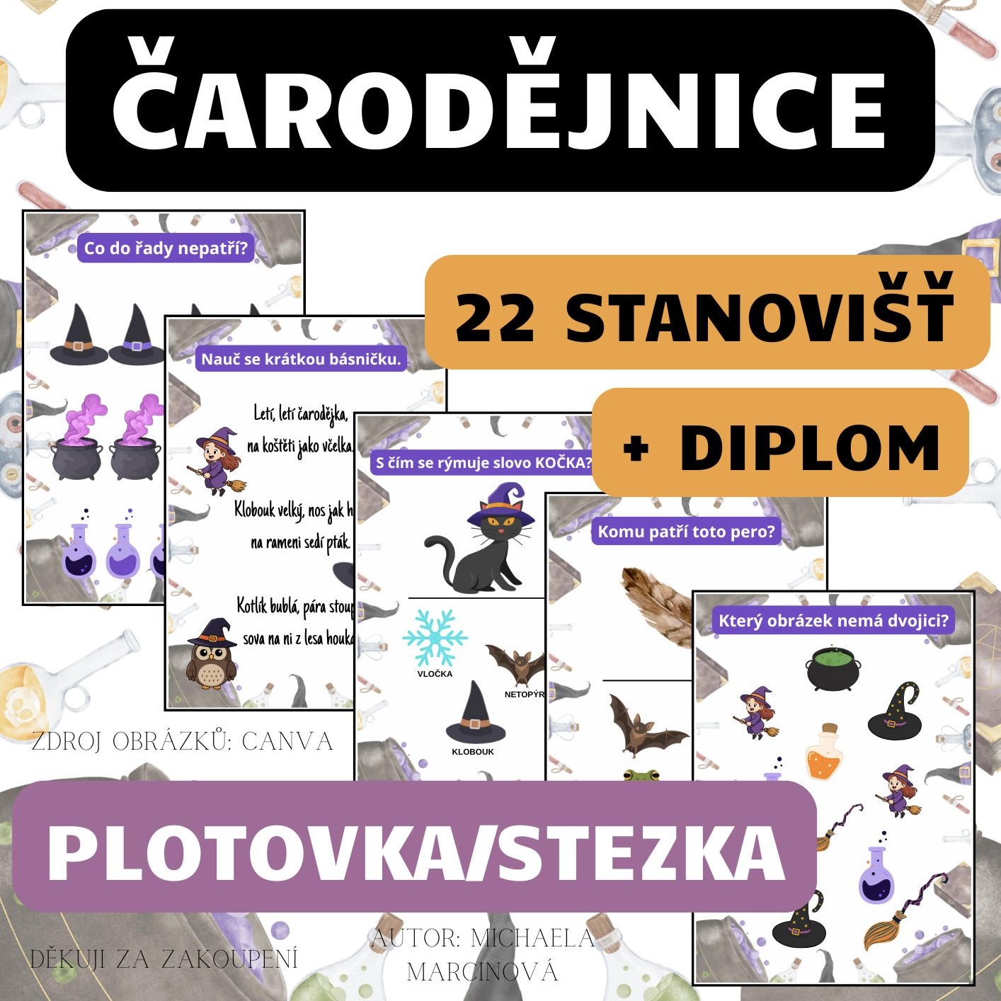 Tento bohatý didaktický soubor obsahuje 22 originálních stanovišť, která promění obyčejný plot, chodbu nebo zahradu v interaktivní naučnou stezku. Děti budou plnit pestré úkoly zaměřené na logiku, zrakové vnímání, počítání i pohyb, a na konci je čeká zasloužený diplom.