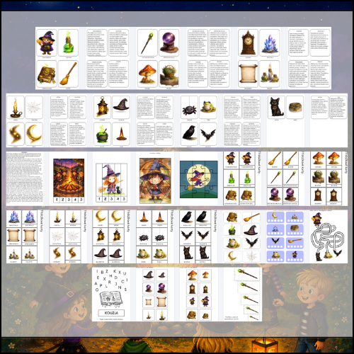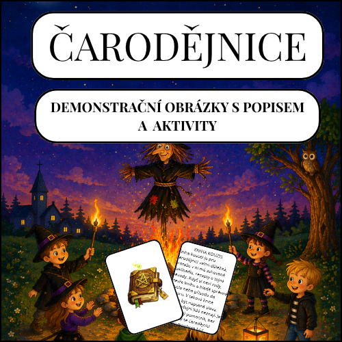 Tematický materiál „Čarodějnice“ přináší dětem kouzelný svět čarodějnických symbolů, tradic a pohádkových prvků hravou, přehlednou a dětem blízkou formou. Děti se seznamují s typickými obrázky spojenými s tématem čarodějnic, rozšiřují si slovní zásobu, učí se pojmenovávat, popisovat, porovnávat a vnímat souvislosti mezi jednotlivými předměty, zvířaty i tradicemi. Materiál propojuje demonstrační obrázky, jednoduché informační texty a navazující aktivity, které podporují poznávání, jazyk, zrakové vnímání, třídění i předčtenářské dovednosti.