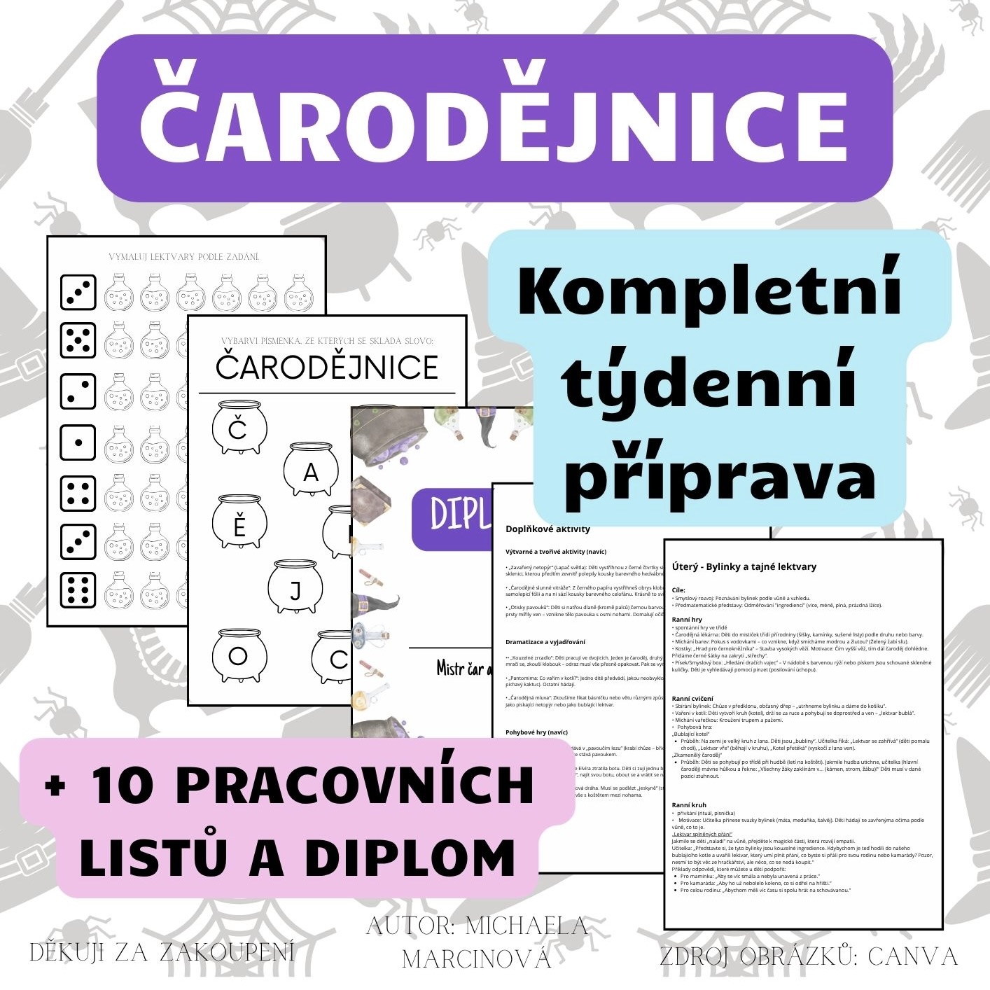 - Usnadňuje pedagogům přípravu na tematický blok „Čarodějnice“.