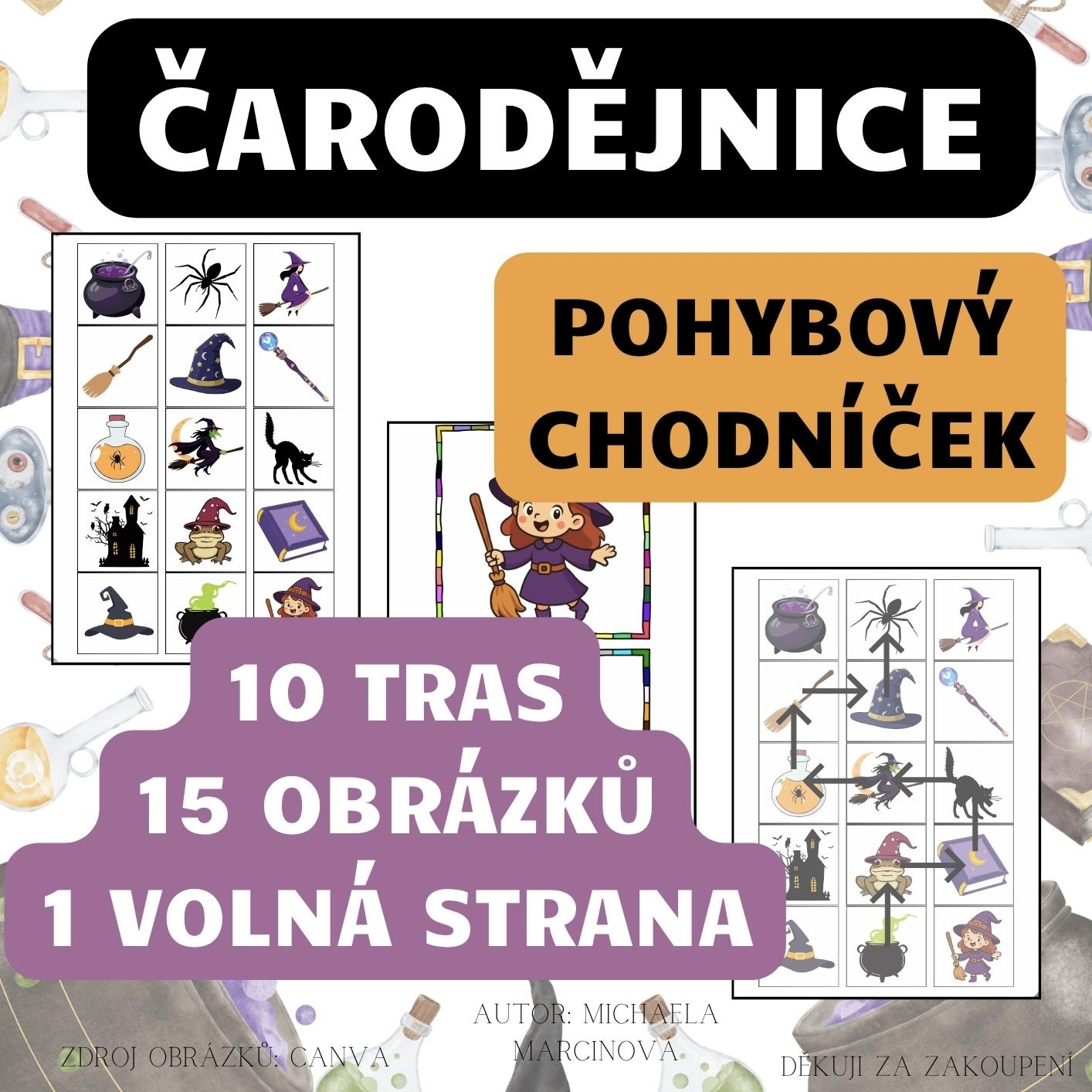 - 1 volná strana pro vlastní cestičku – pro kreativní tvorbu dětí nebo pedagoga (při zalaminování lze používat stíratelný fix stále dokola).