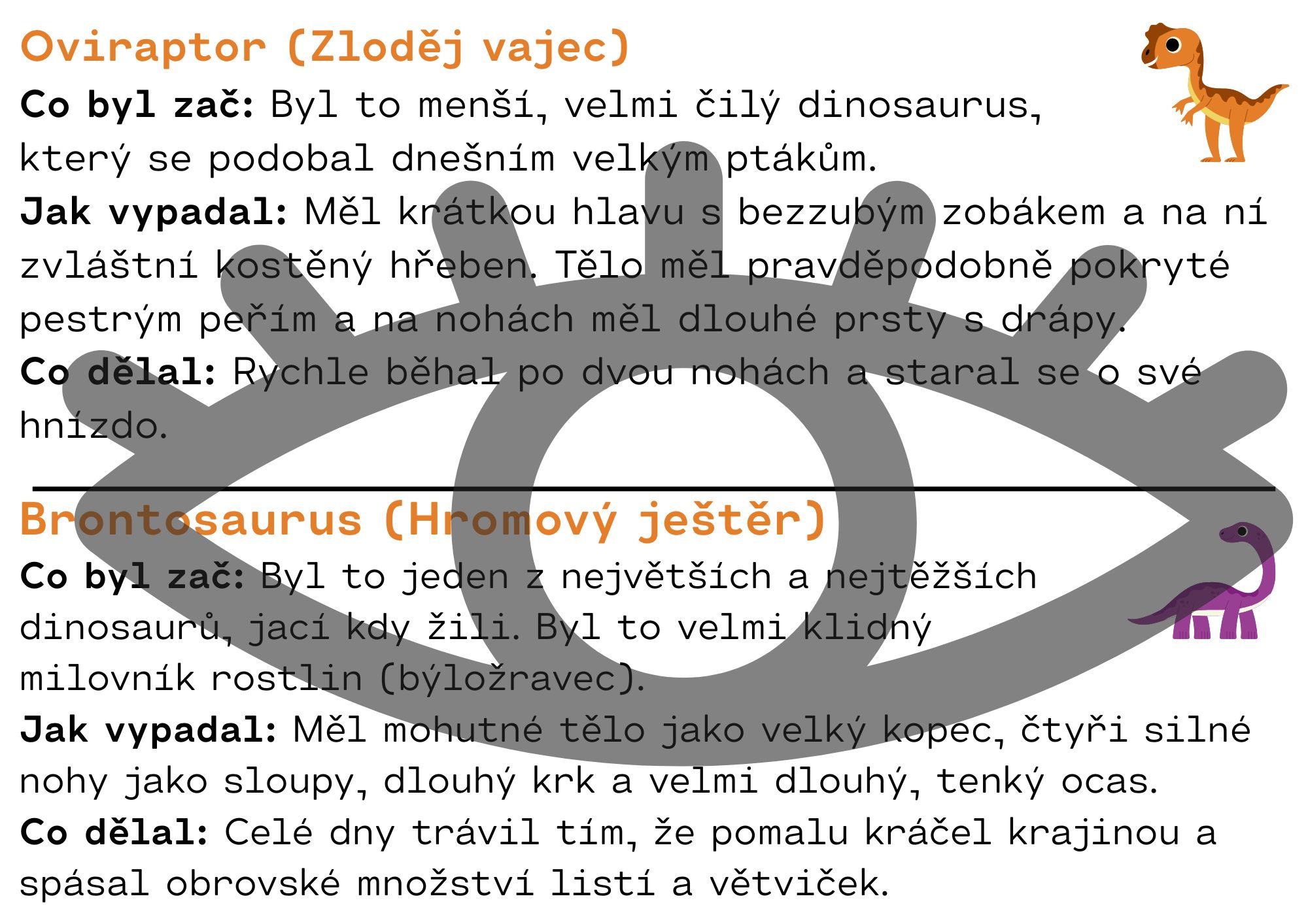 - Hravý a srozumitelný popis: Každý dinosaurus má připravený text v češtině, který vysvětluje, jak vypadal a co dělal, bez složité terminologie.