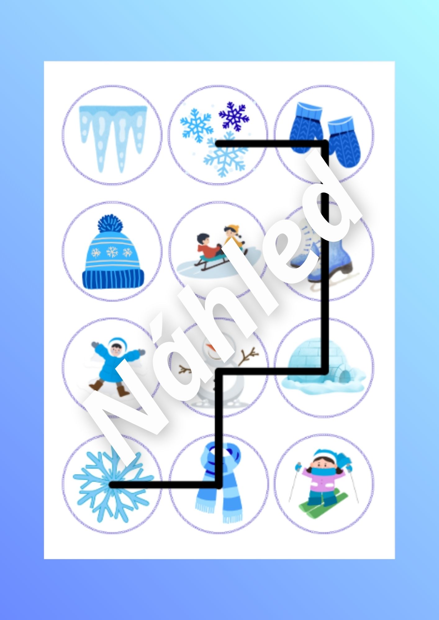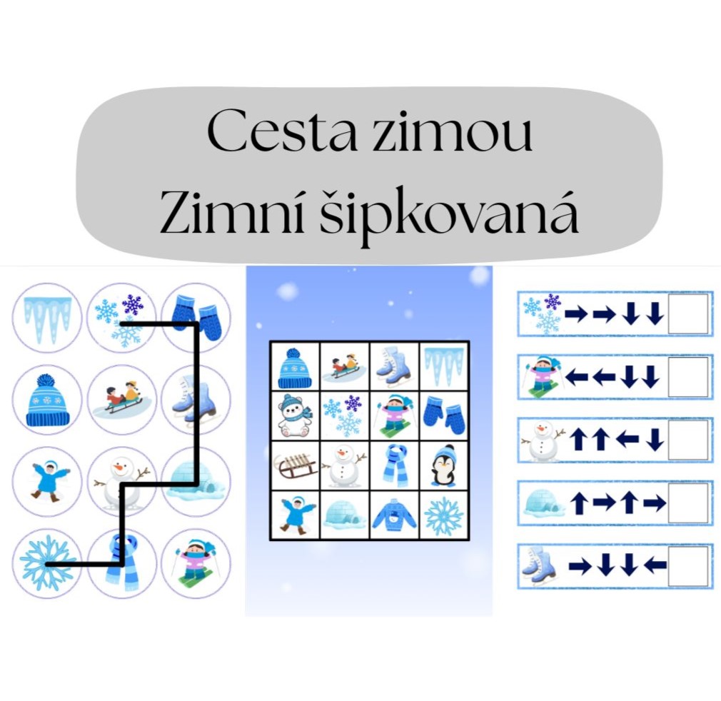 - Cesta zimou - dítě má v ruce mapu bludiště a musí pomocí ní projít správnými obrázky, kterými vede trasa