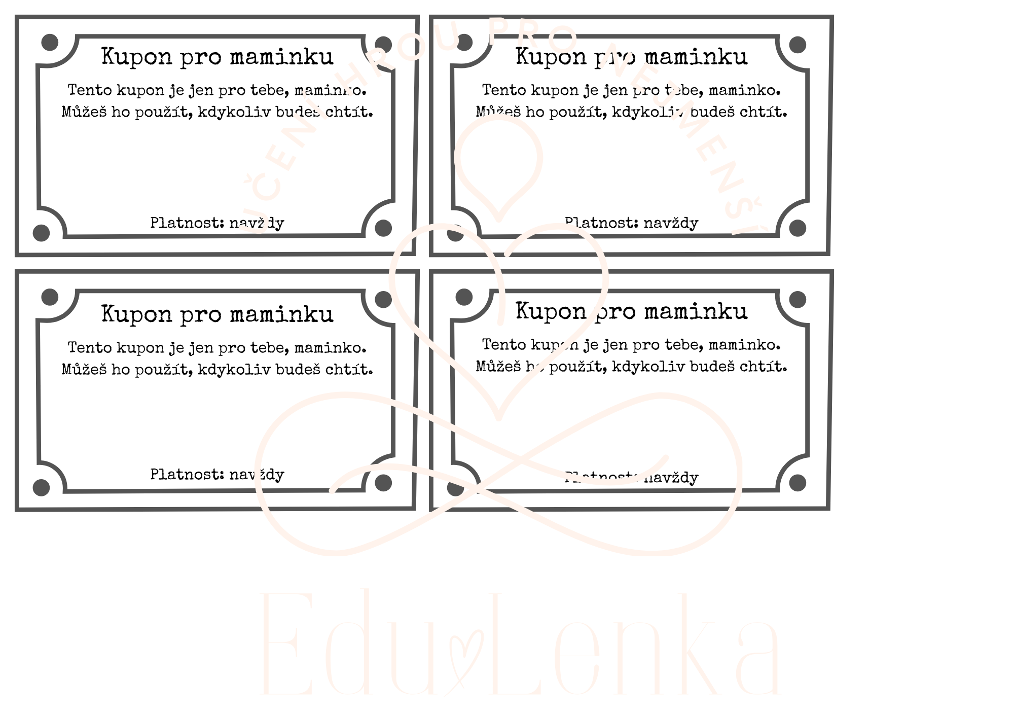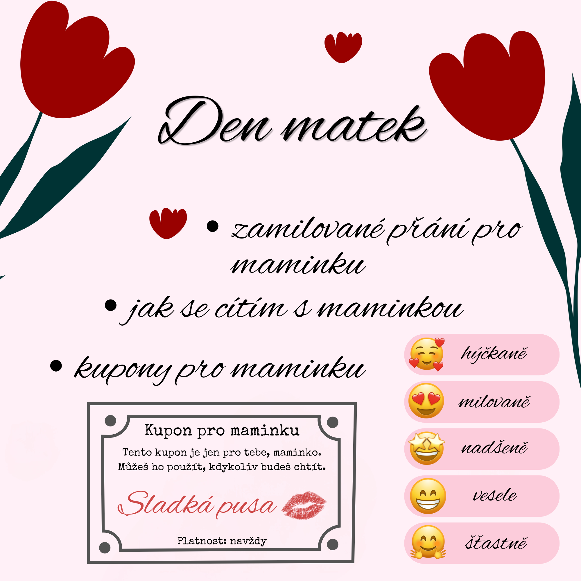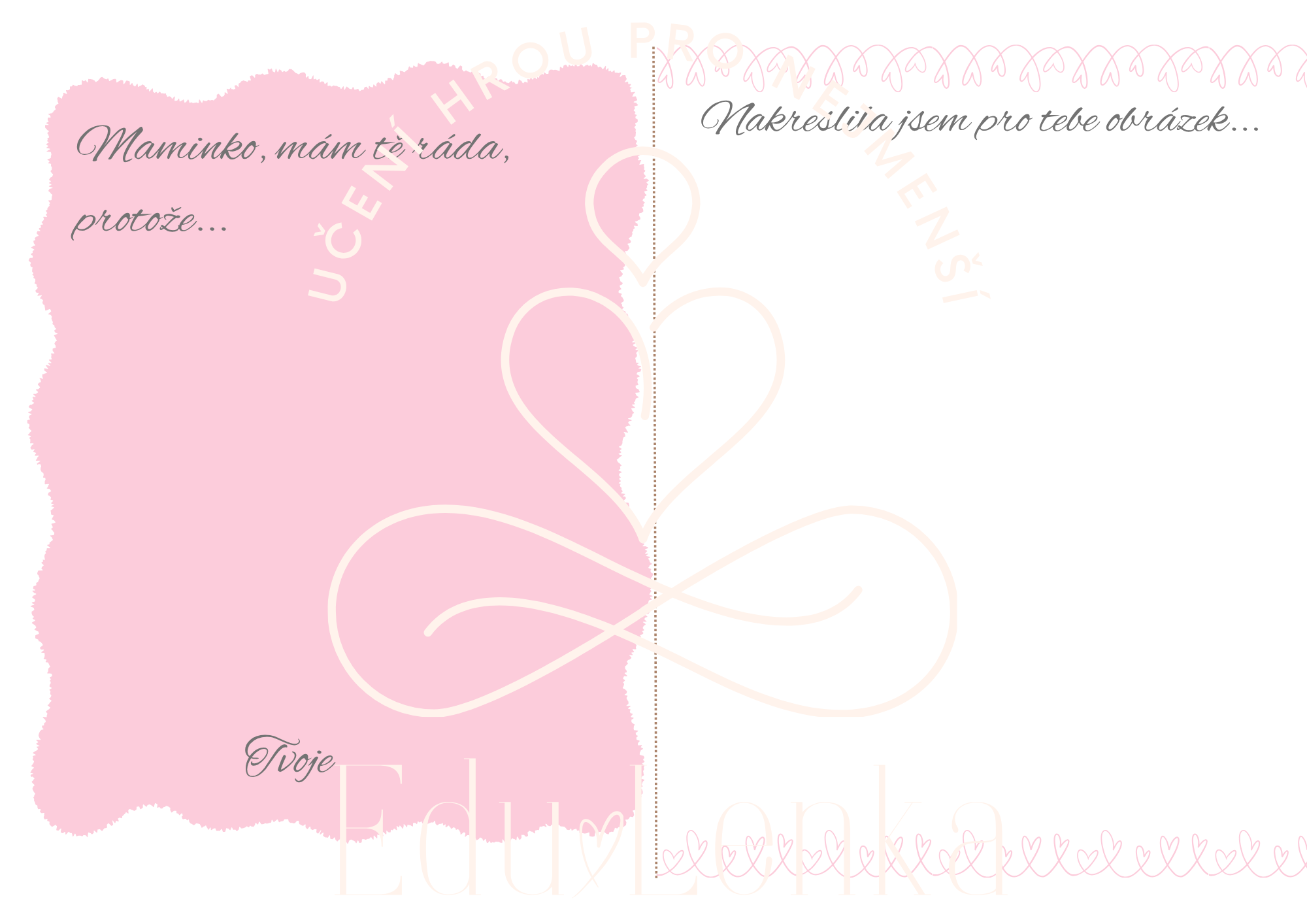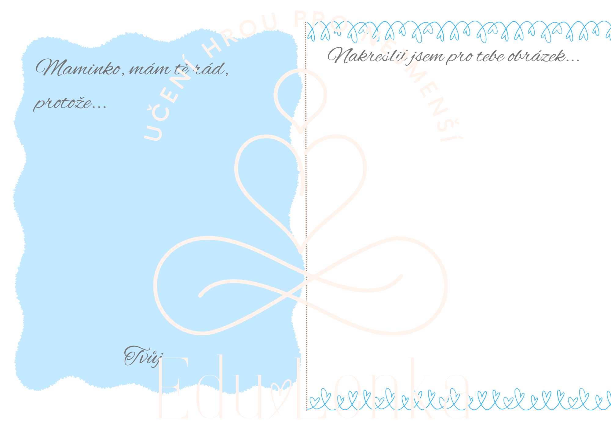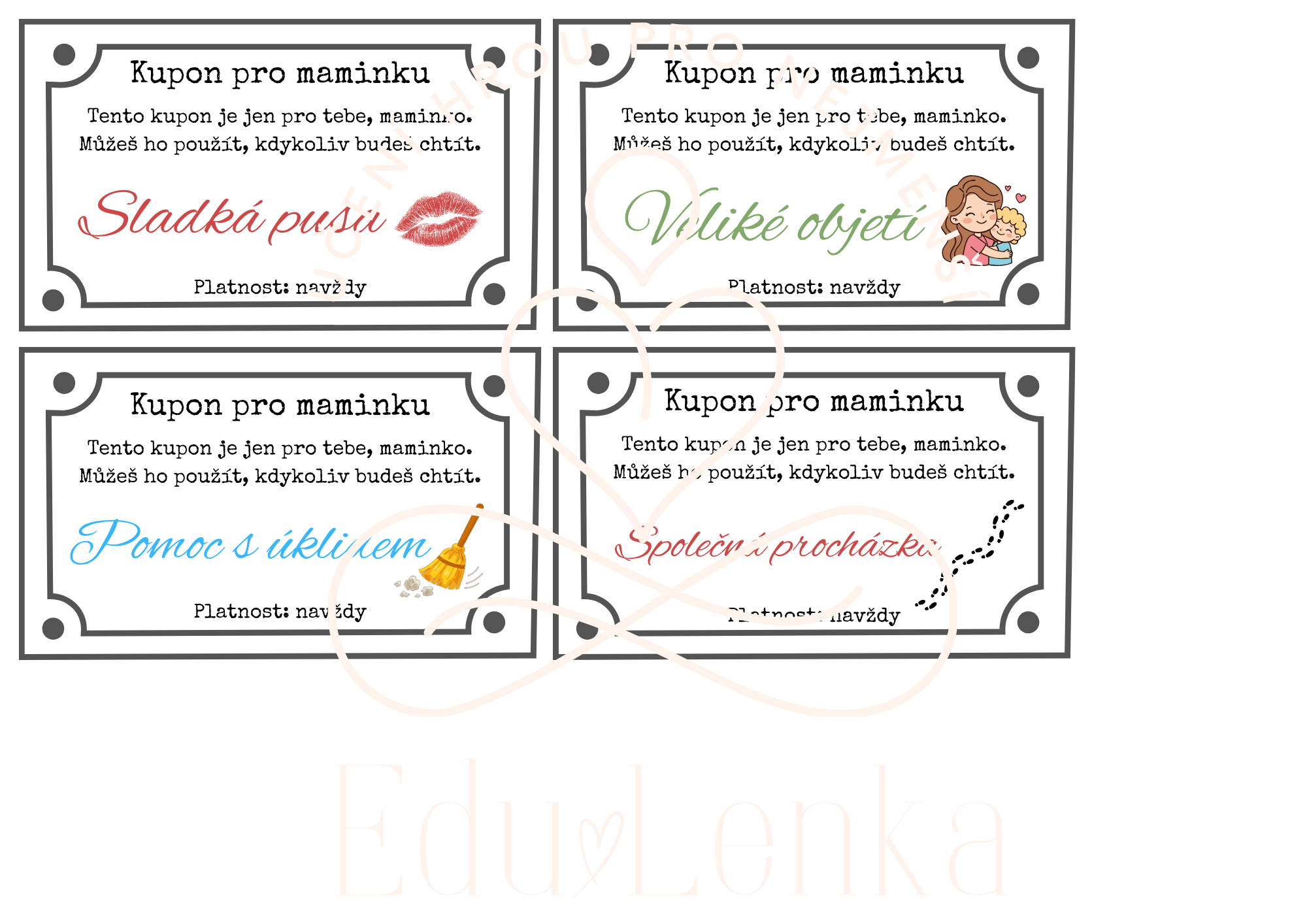 Novinka Kategorie produktu Moje maminka, Táta, Rodina Prodávající: LenkaŠenkeříková Cena za ks: 29 Kč s DPH Popis Máte dotaz? Soubor obsahuje: přání pro maminku vyjádření emocí kupony pro maminku klučičí a holčičí verze vyplněné i prázdné předlohy. You must have JavaScript enabled to use this form. Vaše jméno Váš e-mail Předmět Zpráva Odesláním formuláře souhlasím se zpracováním osobních údajů