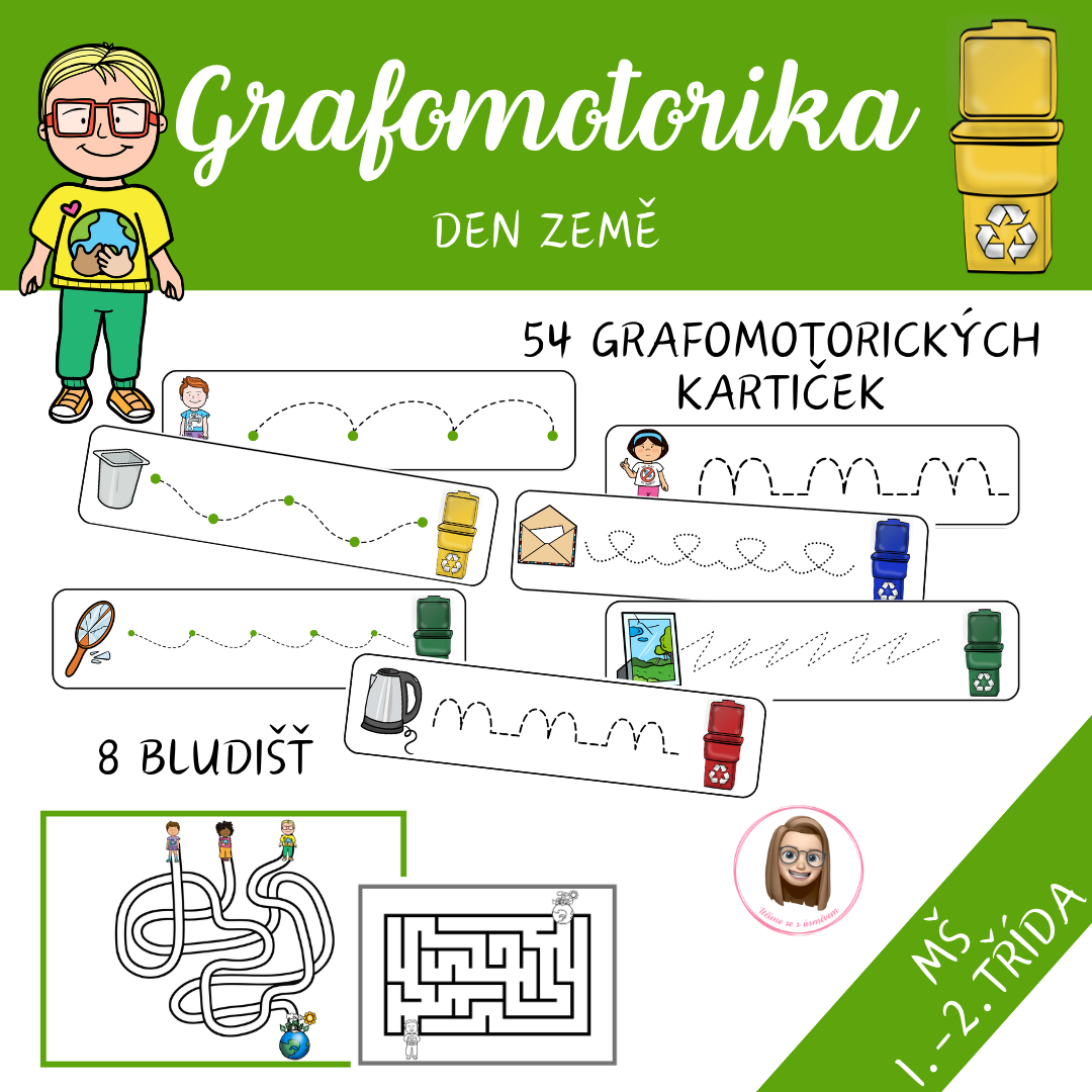 - 54 grafomotorických kartiček