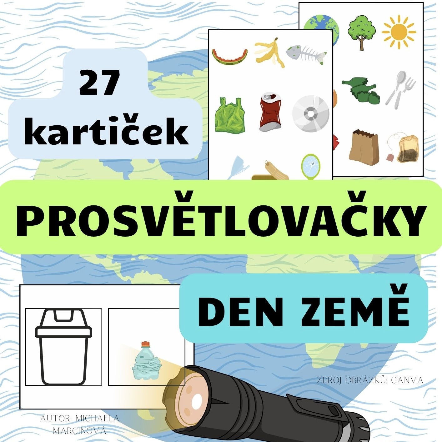 - 3 přehledové karty (A4): Slouží jako slovníček a kontrolní seznam. Obsahují obrázky.