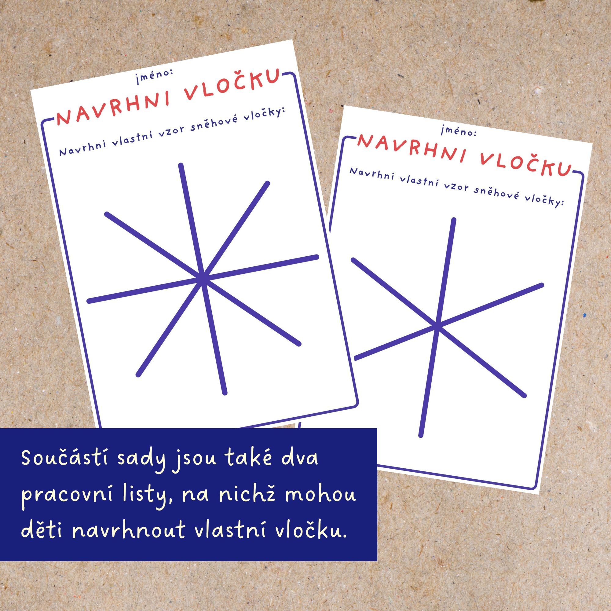 ❄️Nejlépe aktivitu využijete v den, kdy bude venku doopravdy chumelit a budete mít možnost vyrazit pozorovat skutečné sněhové vločky padající na kabáty. Kdo ví, třeba vás právě ony inspirují k vlastním jedinečným návrhům.
