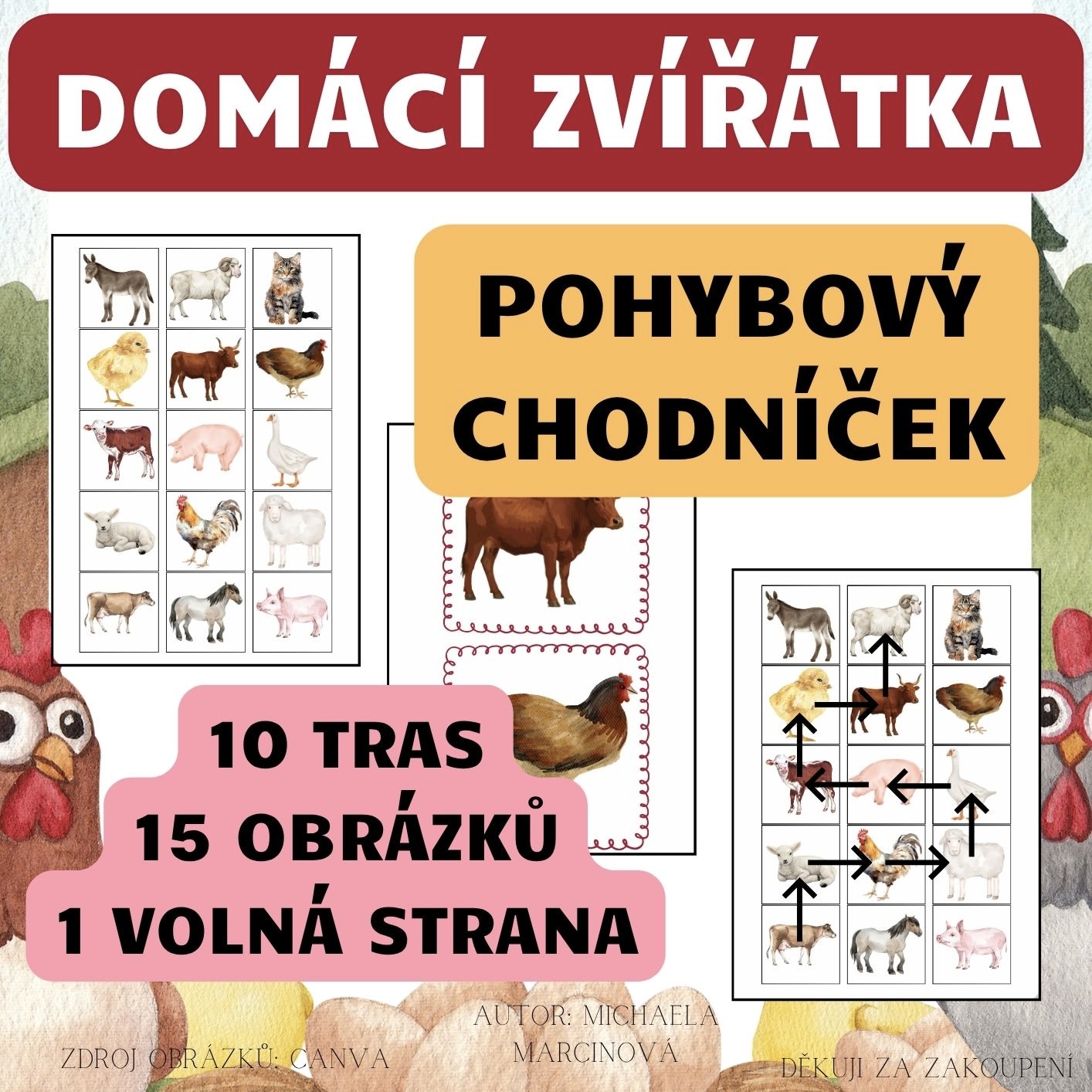 - 1 volná strana pro vlastní cestičku – pro kreativní tvorbu dětí nebo pedagoga (při zalaminování lze používat stíratelný fix stále dokola).
