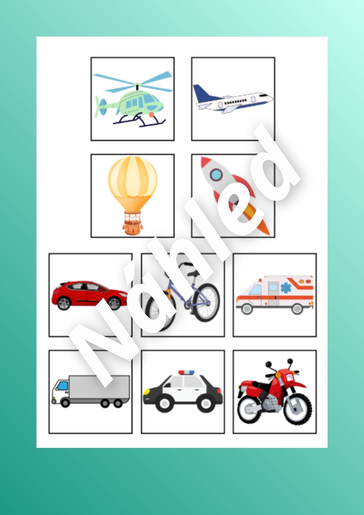 - Přiřazování dopravních prostředků (str. 23-28) - rozstříháme kartičky dopravních prostředků a pak je děti třídí podle toho, kde se nachází (voda, vzduch, koleje, silnice)