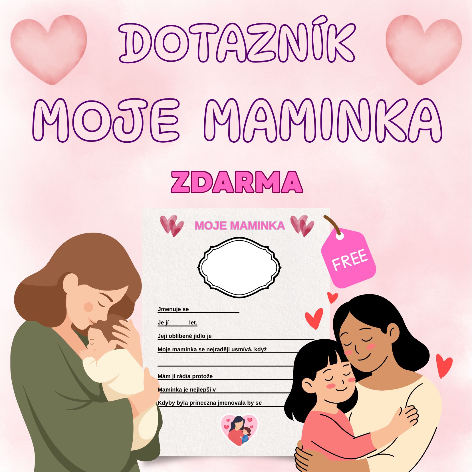 - Ilustrace: Vedle textu je tematický obrázek maminky objímající dítě v srdíčku, což podtrhuje emotivní ladění listu.