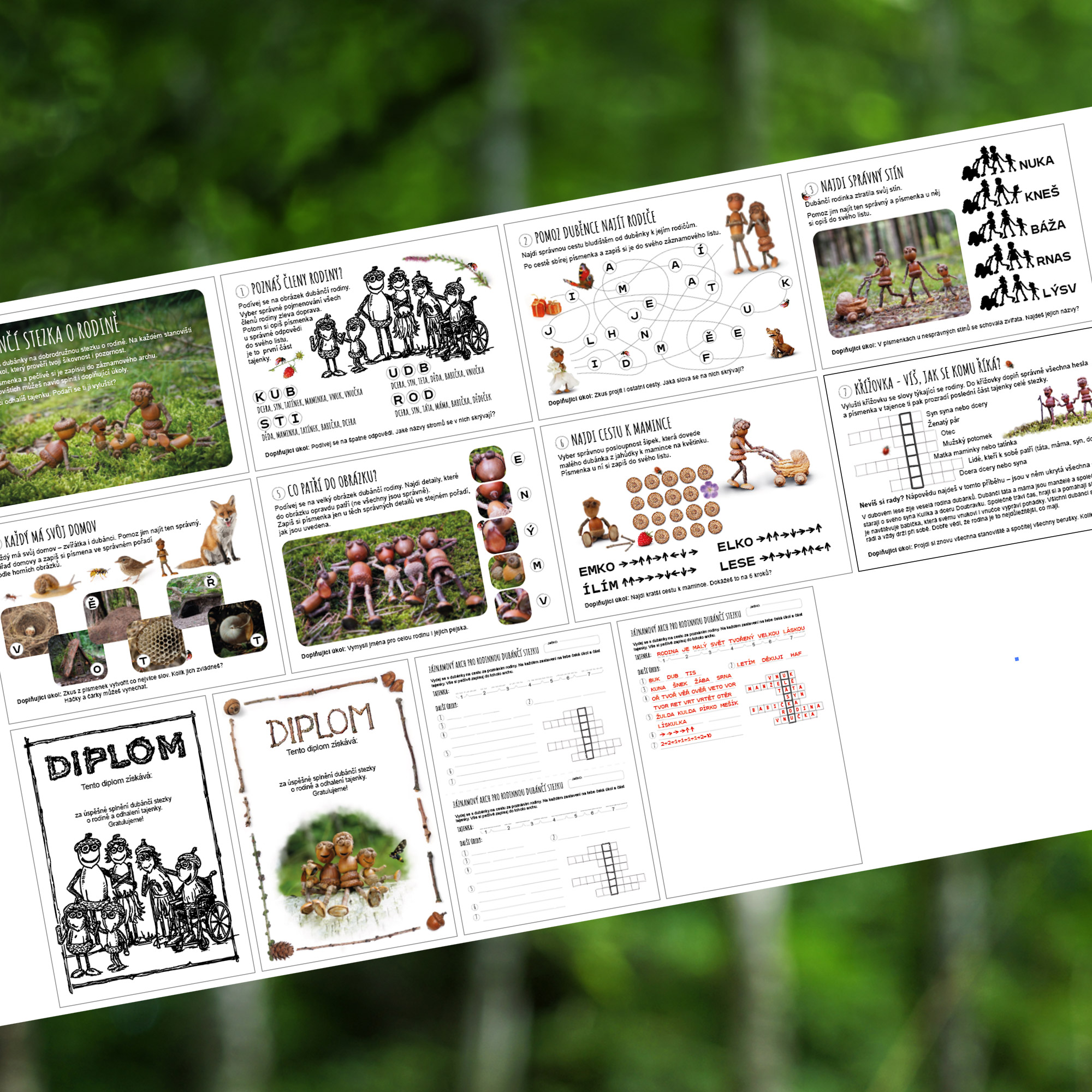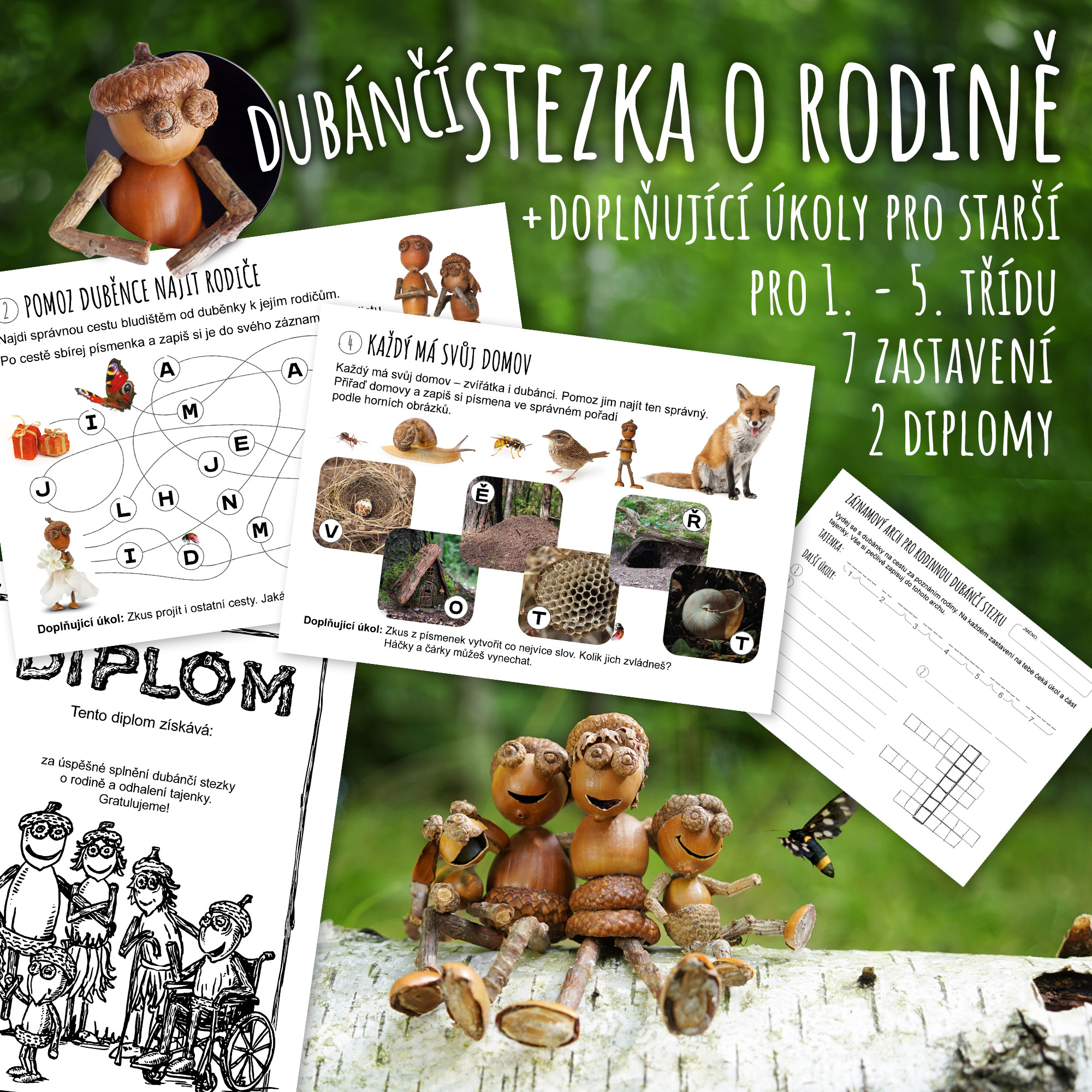 Vydejte se na dubánčí stezku na téma rodiny, která propojuje hravé učení, pohyb a objevování. Stezka obsahuje celkem 7 zastavení s různorodými úkoly, při kterých děti sbírají písmenka a postupně skládají tajenku do záznamového archu.