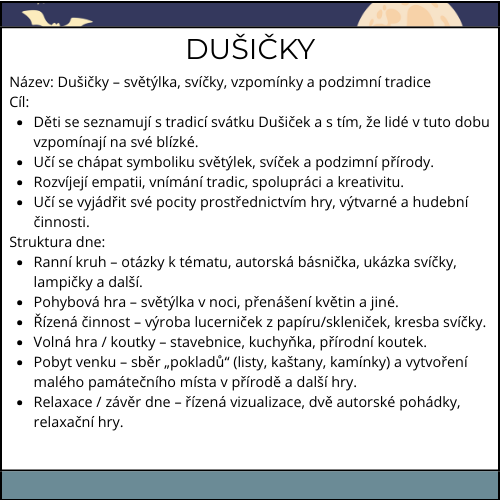 ✅ Ideální pro podzimní období – propojuje tradice, symboliku světýlek, pohyb, tvoření i relaxaci.