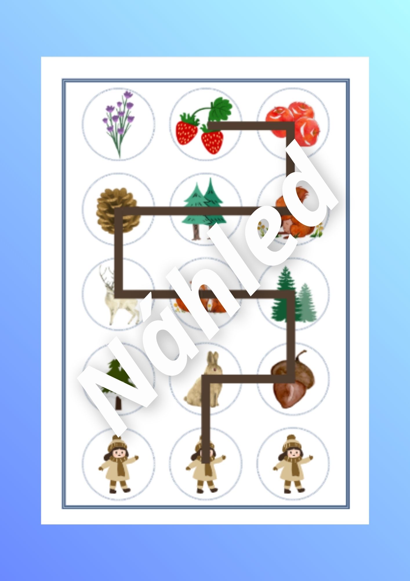 - Cesta Marušky - dítě má v ruce mapu bludiště a musí pomocí ní projít správnými obrázky, kterými vede trasa