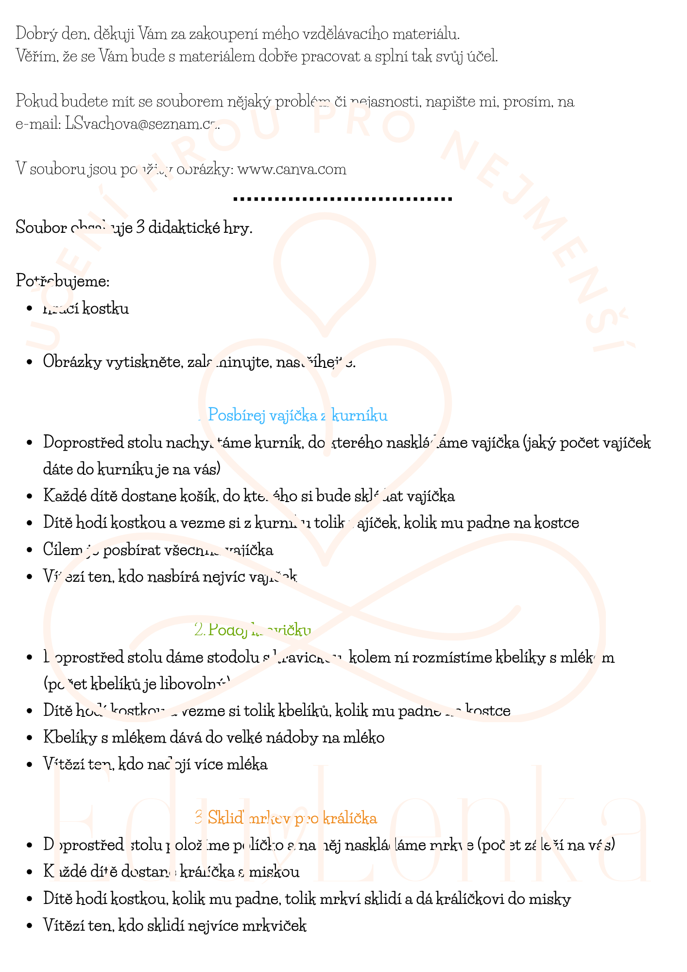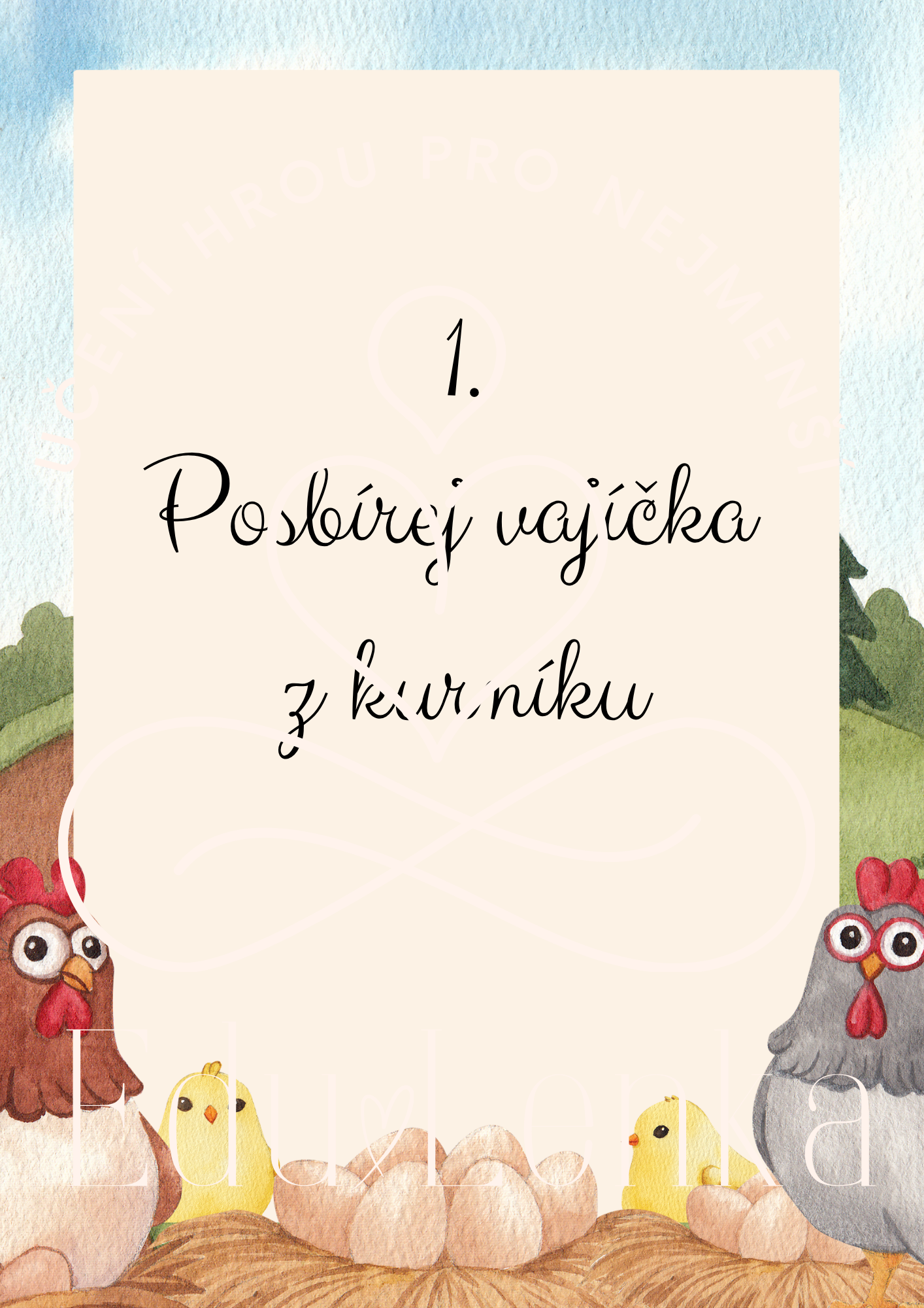- Dítě hodí kostkou a vezme si z kurníku tolik vajíček, kolik mu padne na kostce