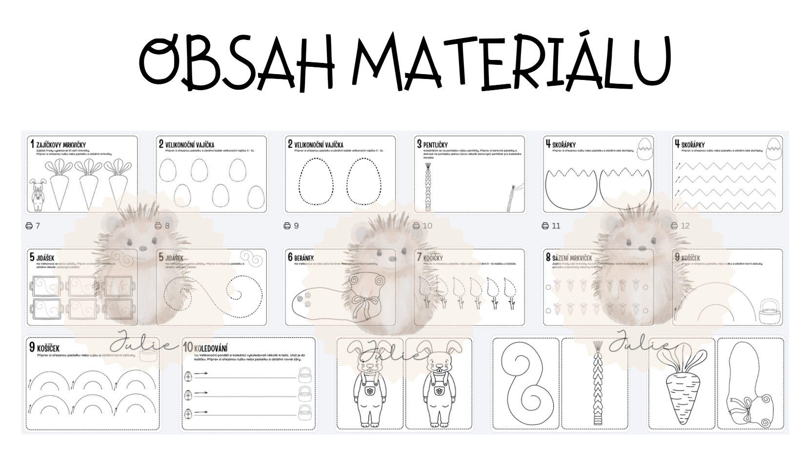 Obsah materiálu: Soubor obsahuje celkem 18 listů v černobílé variantě, včetně průvodního listu s metodickými pokyny a tematických omalánek.