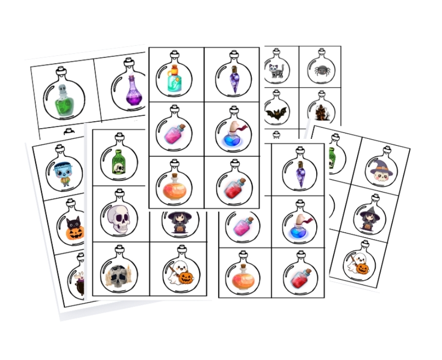 ➡️ 19 stran a po zkompletování 48 obrázků s halloweenskou tematikou a lektvary