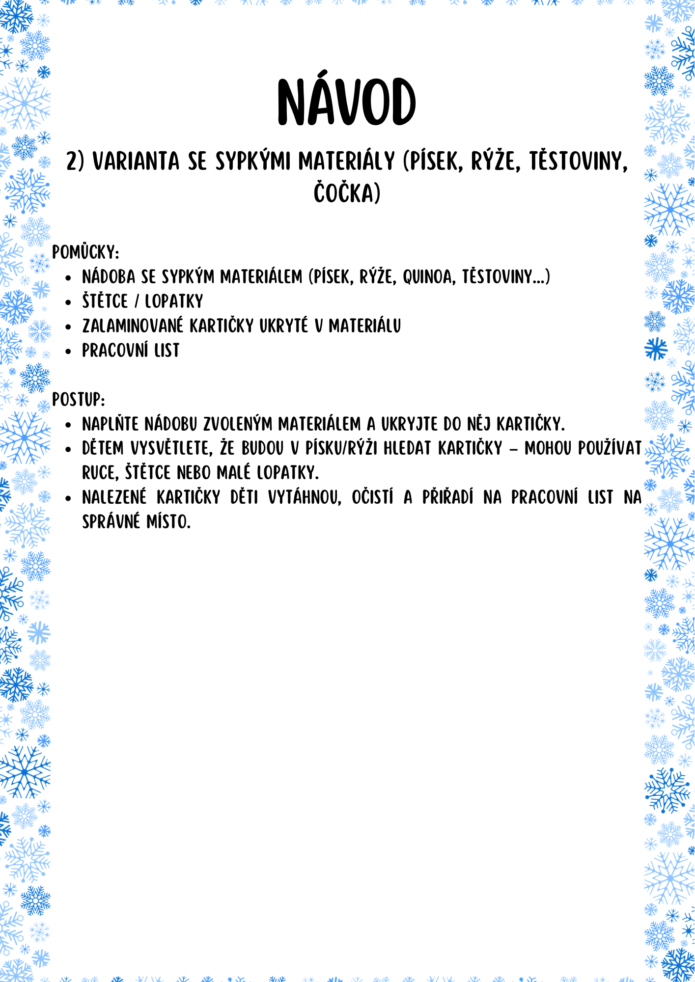 ✔️ Ideální jako ranní činnost, senzomotorická aktivita nebo součást tematického bloku Zima / Zimní sporty.