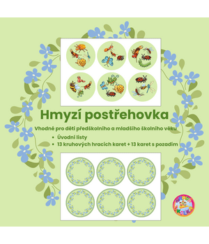 Hmyzí postřehovky jsou určeny pro děti předškolního a mladšího školního věku. Rozvíjí zrakové vnímání, postřeh a pozornost.