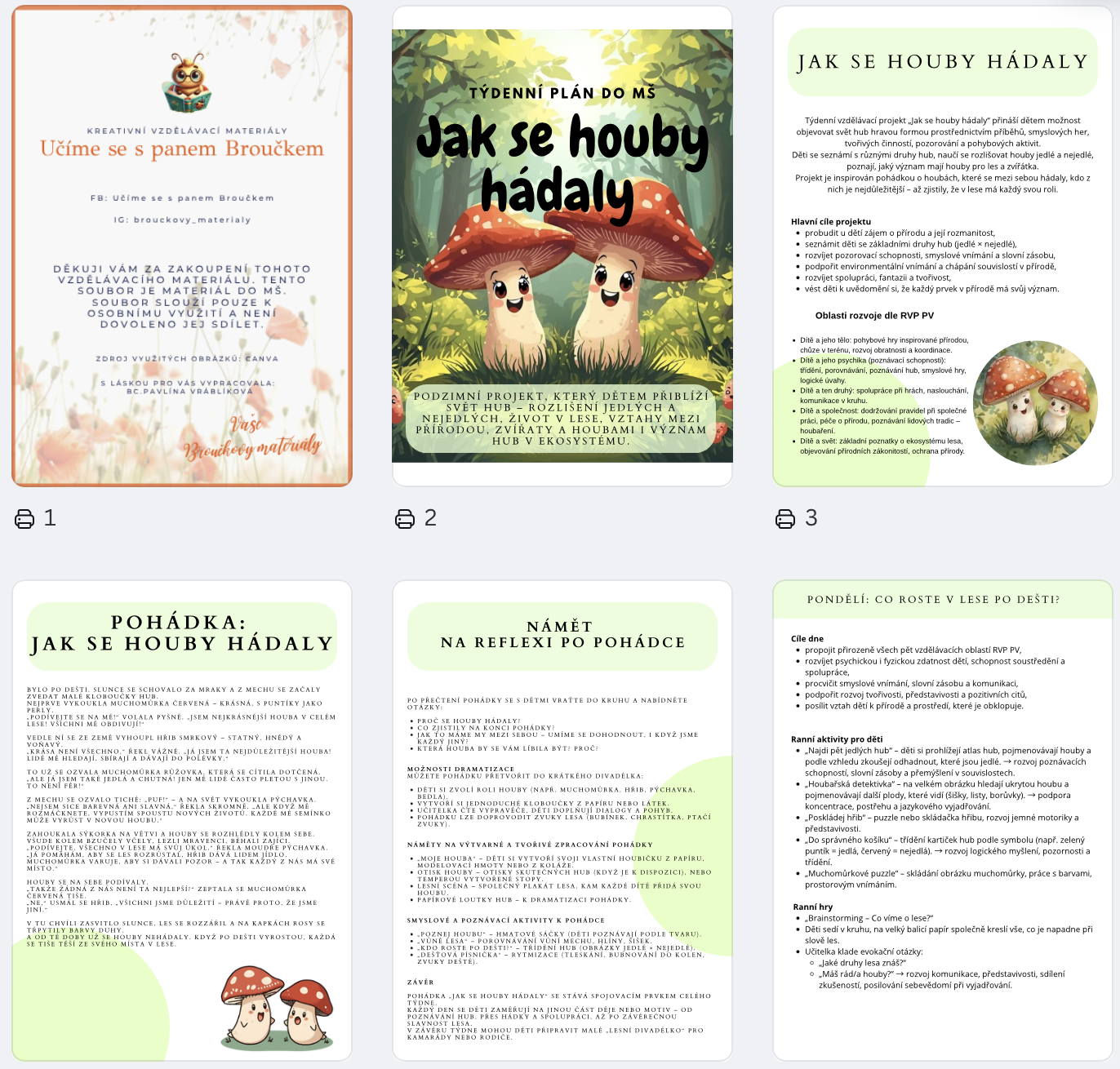 Jak se houby hádaly – týdenní vzdělávací projekt do MŠ (72 stran PDF)