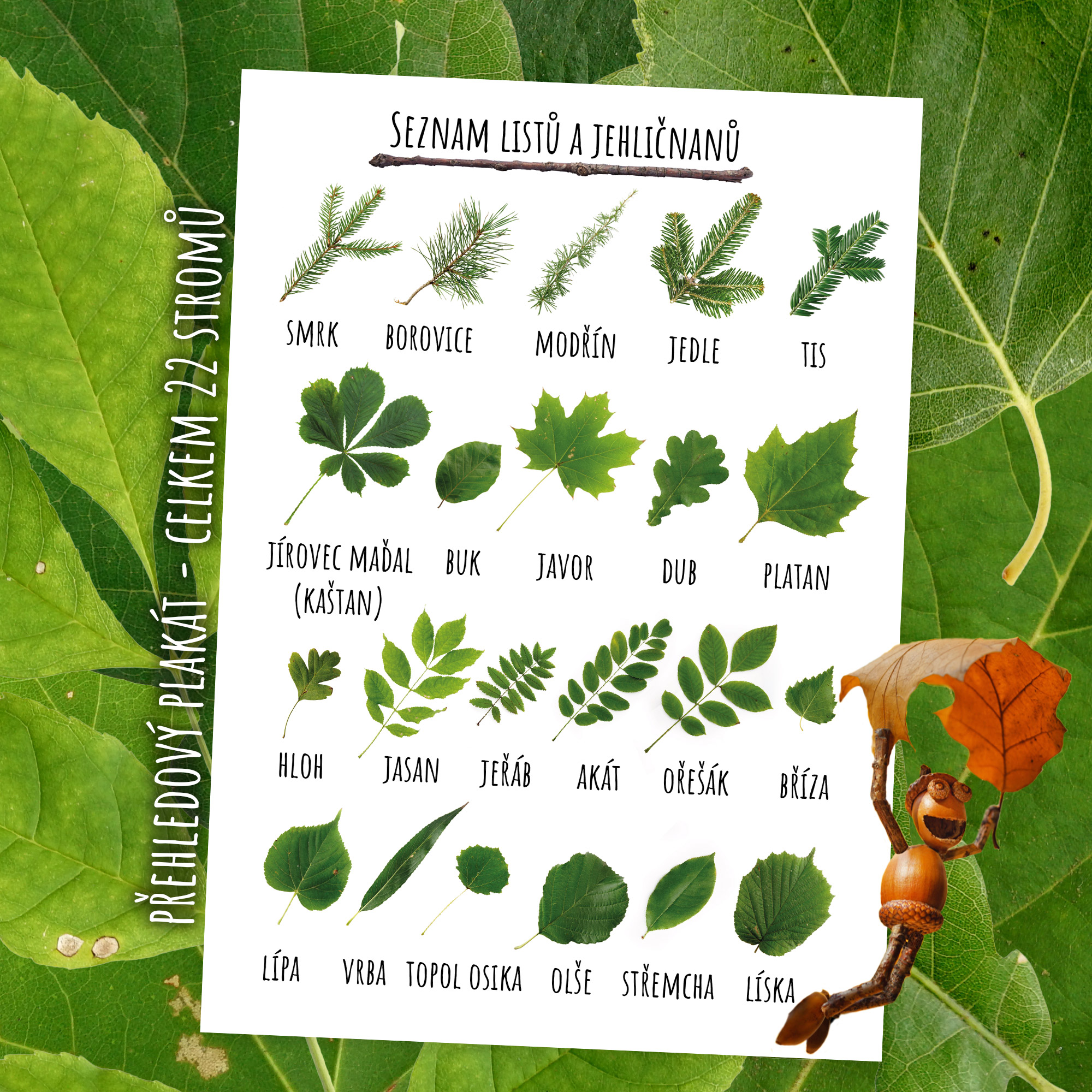 - Přehledový plakát se všemi použitými stromy, který mohou děti využít jako nápovědu při hře nebo jako pomůcku venku při určování stromů v přírodě.