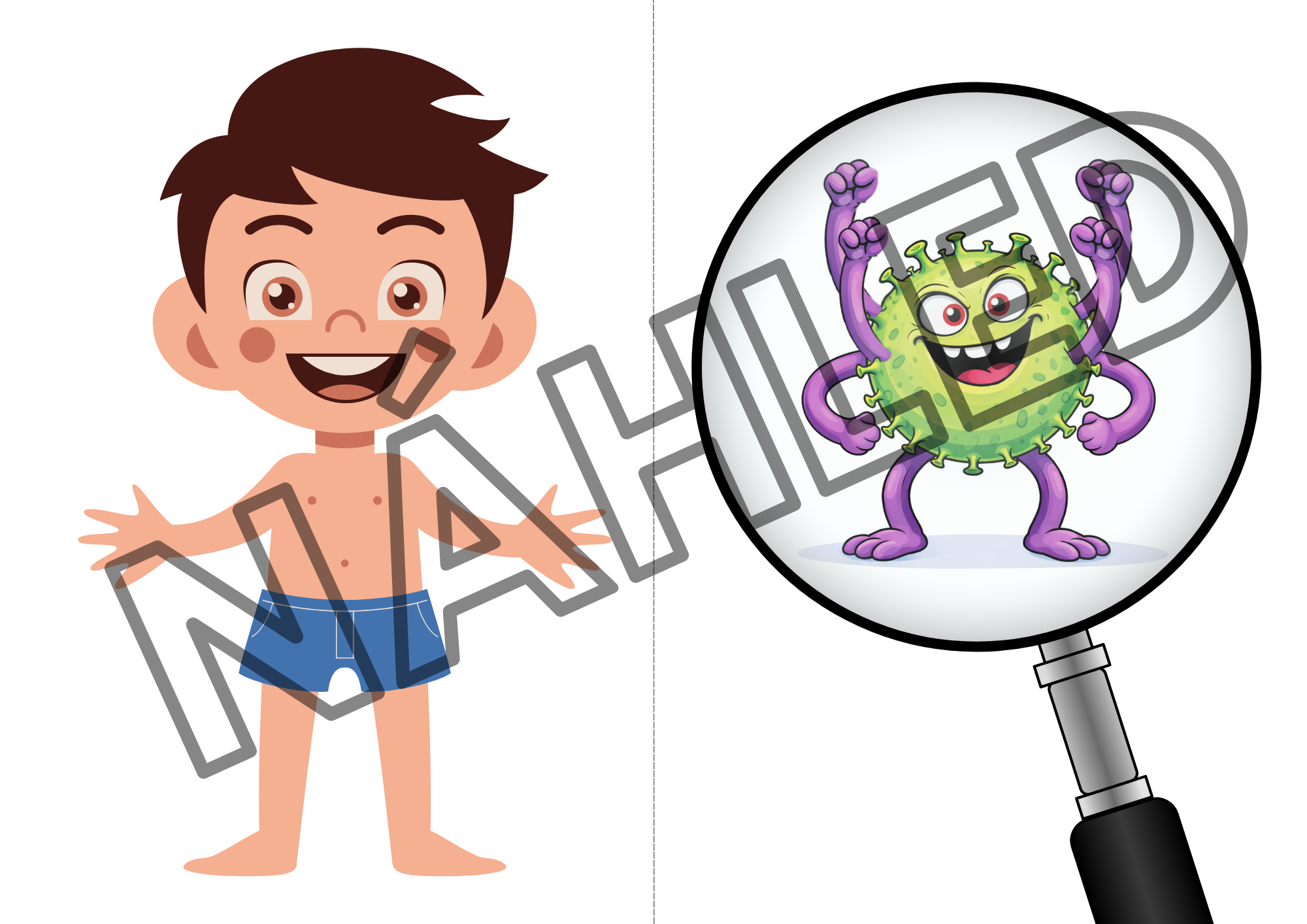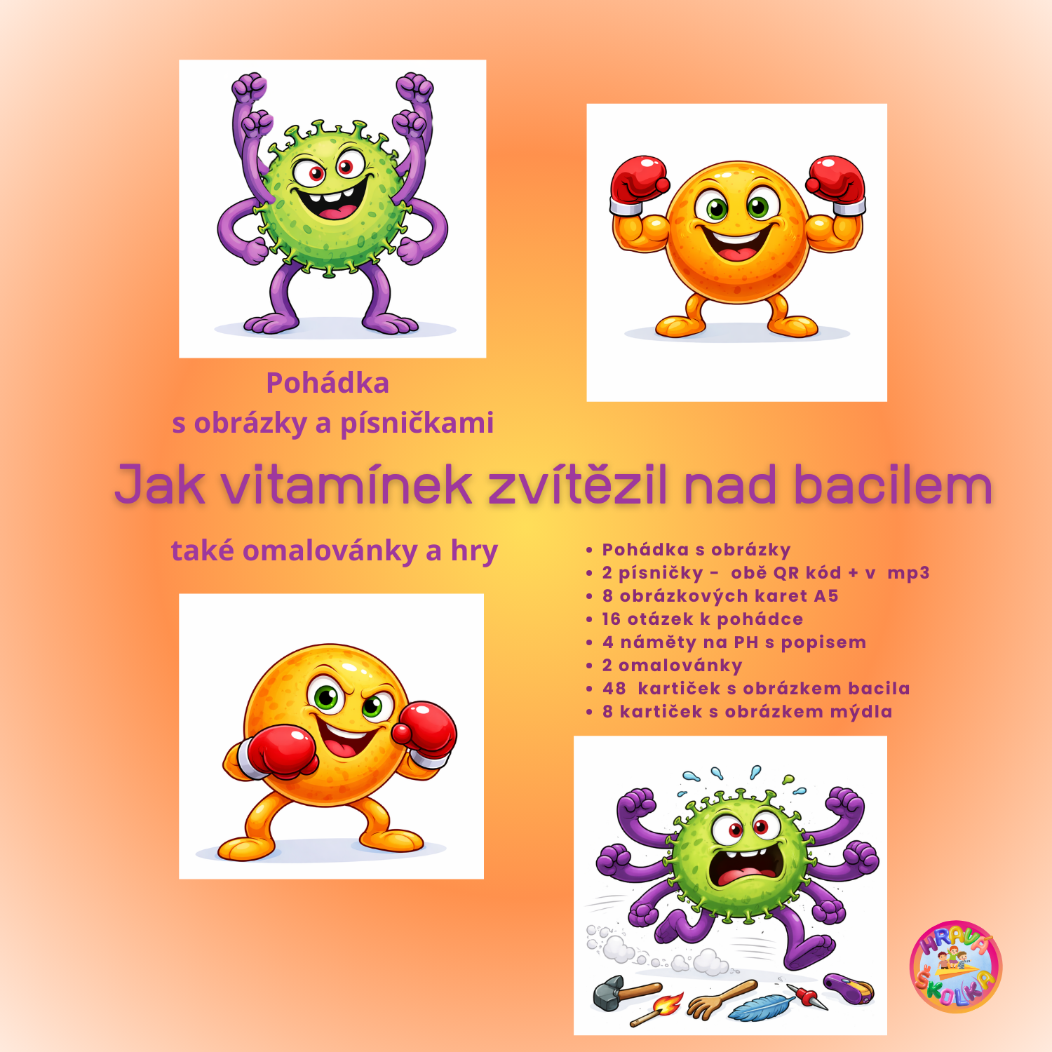 Soubor je určen pro děti předškolního a mladšího školního věku (1., 2. třída). Obsahuje pohádku s obrázky a písničkami, 8 demonstračních obrázků k pohádce ve formátu A5, 2 omalovánky A5, 2 metodické listy s otázkami k pohádce, náměty na 4 hry s popisem, 48 kartiček s obrázkem bacilů + 8 kartiček s obrázkem mýdla ke hře "Najdi a znič bacila".