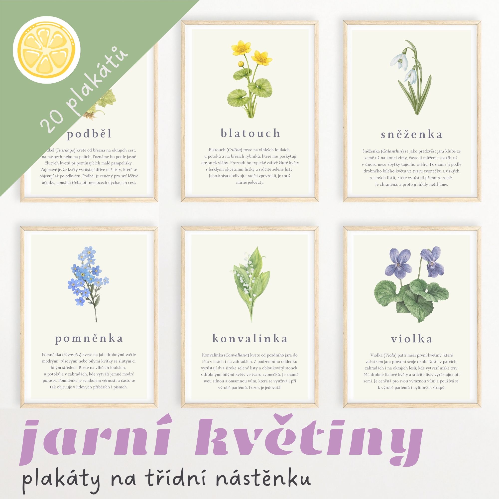 🌼Soubor plakátků s obrázky a popiskem dvaceti nejznámějších jarních květin přenese atmosféru přicházejícího jara na třídní nástěnku.
