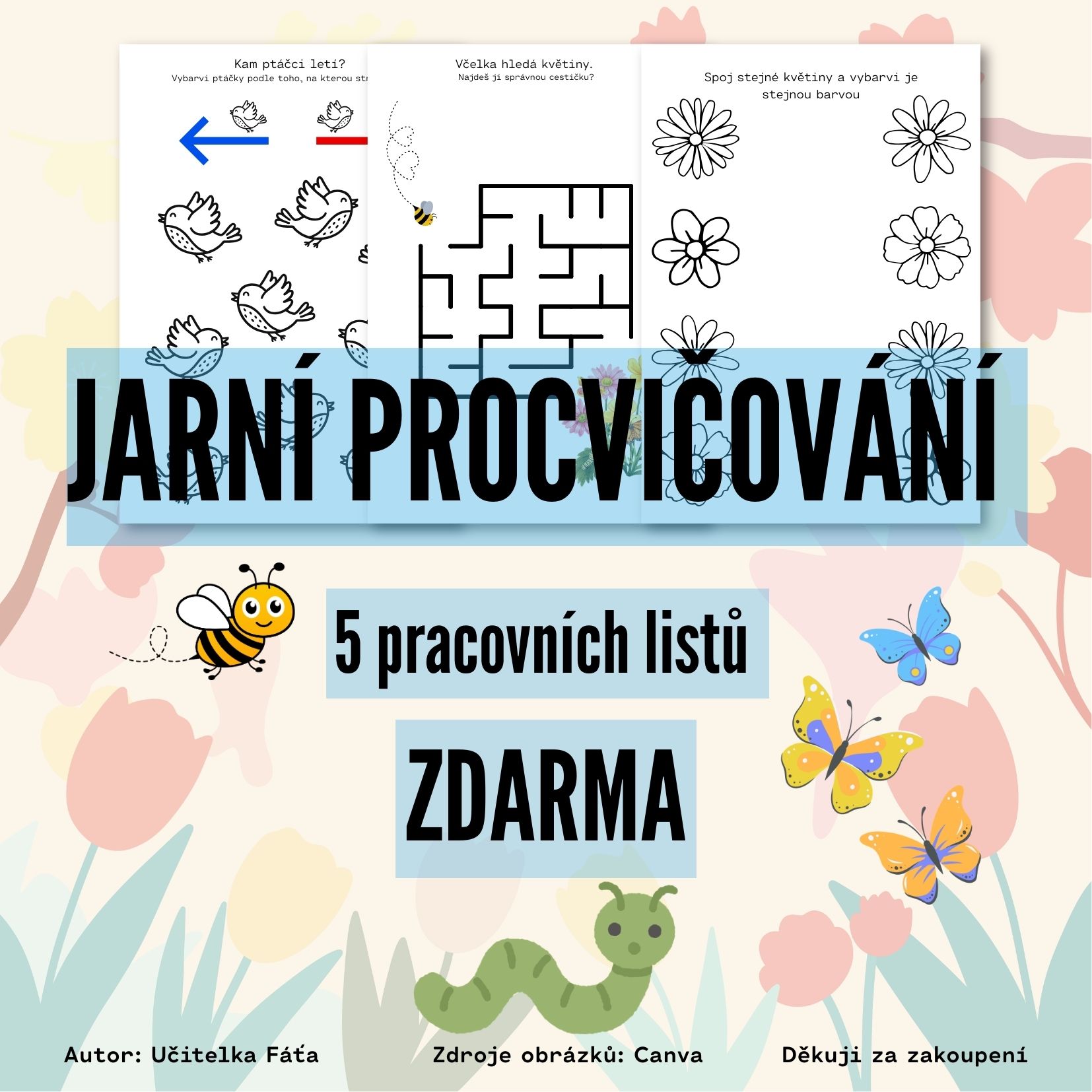 Připravila jsem 5 pracovních listů, které jsou skvělým doplňkem k jarnímu tématu ve školce. Děti si na nich hravou formou procvičí různé dovednosti. Materiál je vhodný pro děti 3–6 let -do školky i na domácí procvičování.