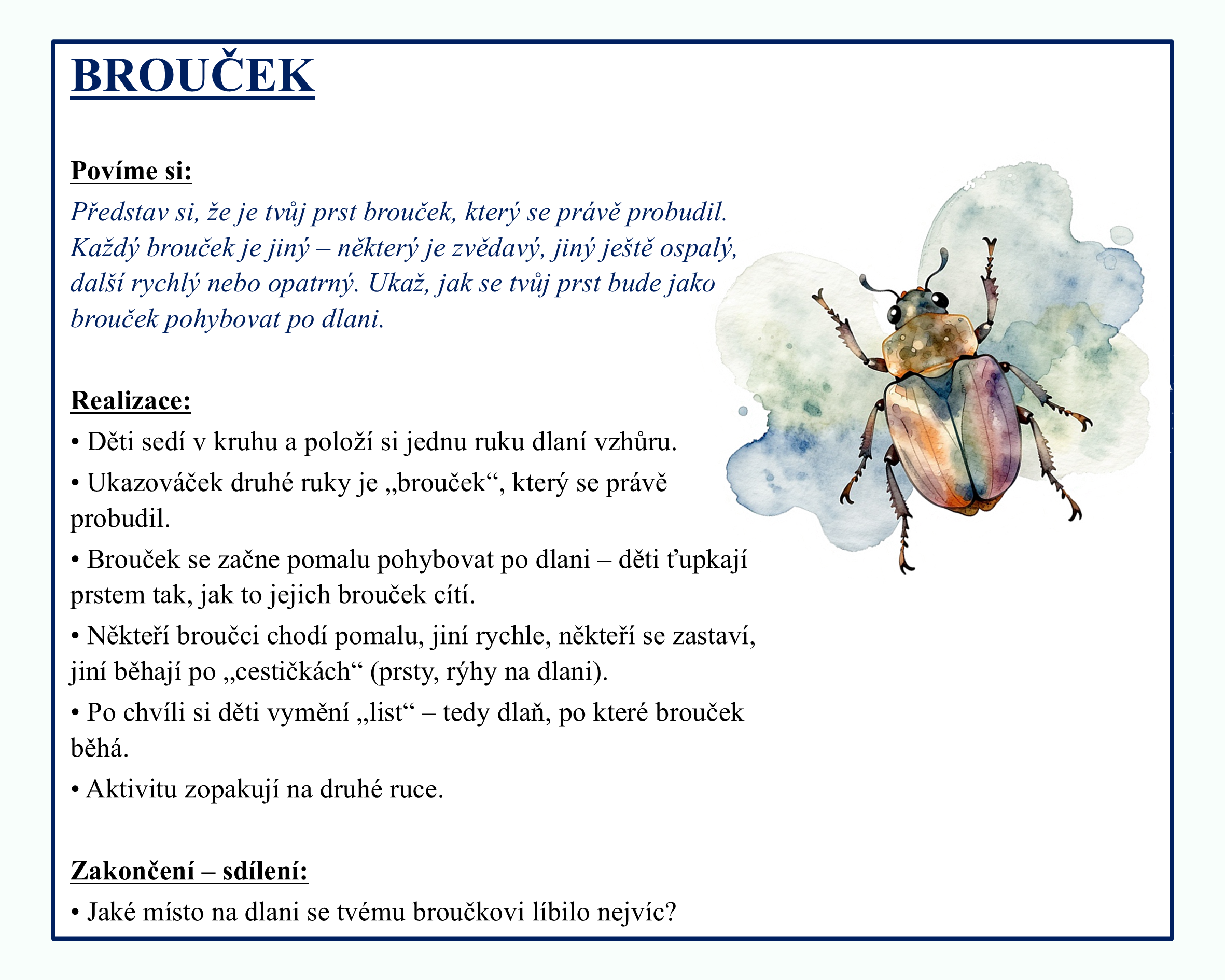Použití: karty lze kombinovat s dalšími aktivitami a navazujícími tématy, vhodné pro ranní kruh, přechody mezi činnostmi, zklidnění i krátké prožitkové chvilky během dne.