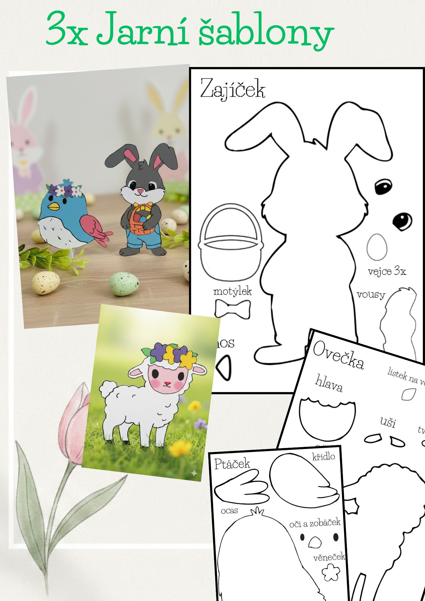 Šablony k vlastnímu dotvoření. Ideální pro překreslení na barevné archy papíru.