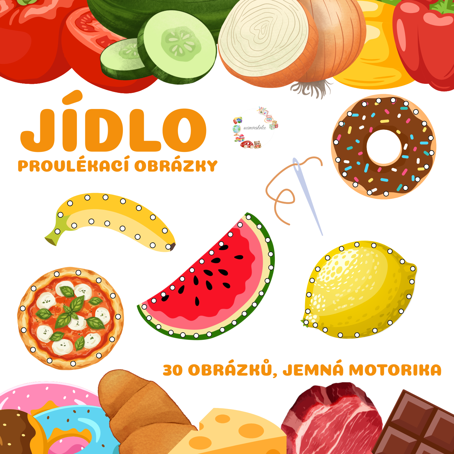 Soubor obsahuje 30 provlékacích obrázků různých potravin. 🍔