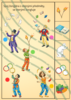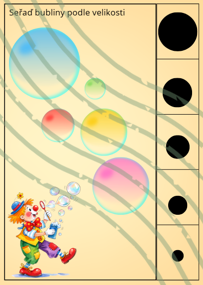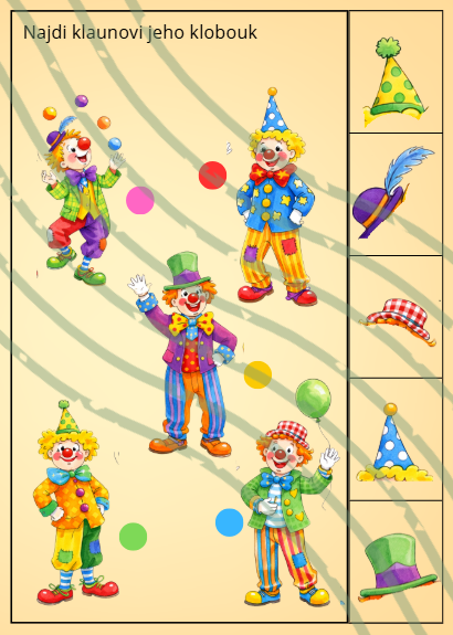 Didaktický materiál obsahuje 5 karet. Na kartě jsou obrázky (např. přiřazování, počítání, hledání rozdílů). Dítě přiřazuje barevné puntíky k odpovědím, které považuje za správné. Po splnění úkolu kartu otočí. Na zadní straně je kontrolní vzor z barevných teček a pokud barvy odpovídají rozložení knoflíků → úkol je správně.