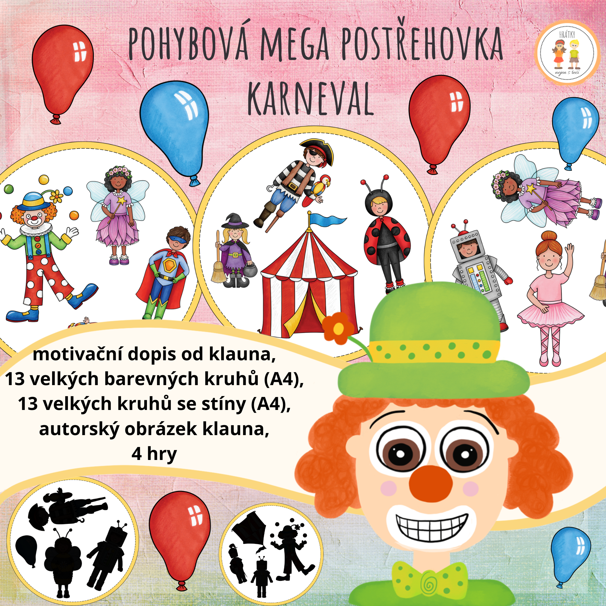 - 13 velkých barevných kruhů - na každém jsou 4 obrázky (A4),