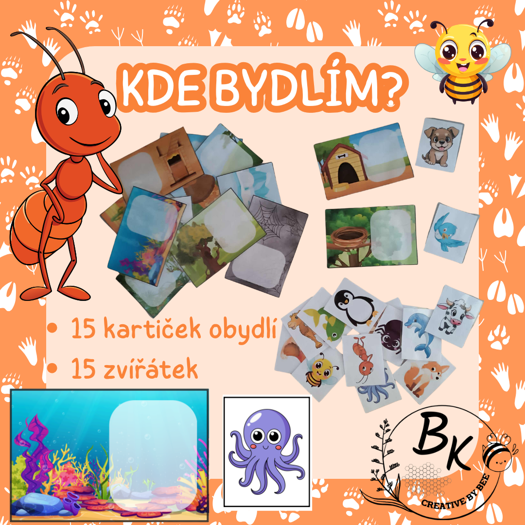 Úkolem dětí je přiřadit zvíře k místu, kde žije – například pejska k boudě nebo včelku k úlu.