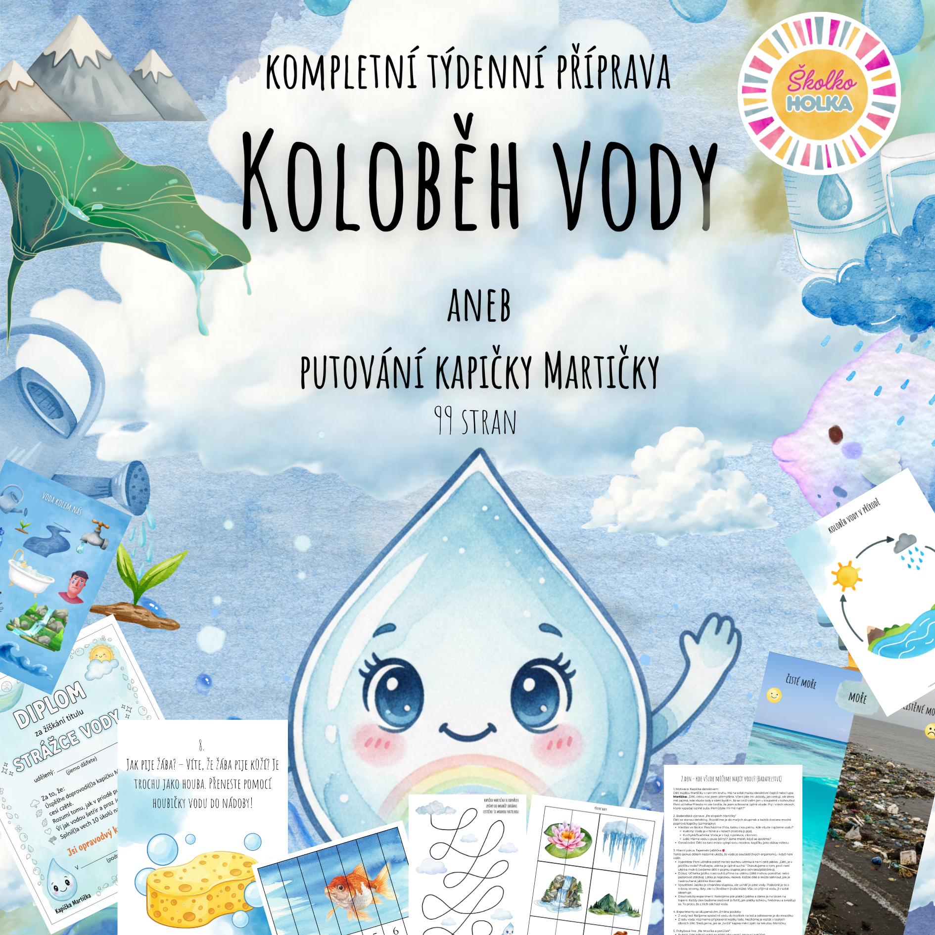 Milé paní učitelky, připravila jsem pro vás soubor, ve kterém se děti skrze příběh malé kapičky Martičky seznámí s fascinující cestou vody v přírodě. Společně s Martičkou prožijí její cestu. Celá příprava je postavená na prožitkovém učení, kdy děti svět vody nejen pozorují, ale samy si ho v rámci pokusů osahají a prozkoumají. Pokud hledáte způsob, jak téma vody proměnit v opravdové dobrodružství, připravila jsem pro vás propracovaný PDF soubor na celý týden. Ideální na oslavu SVĚTOVÉHO DNE VODY 22. 3..