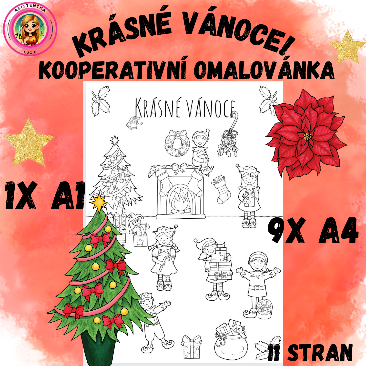 Kooperativní vánoční omalovánka je výtvarná aktivita zaměřená na spolupráci, komunikaci a společné tvoření. Děti pracují na jednotlivých částech obrázku, které po dokončení vytvoří jeden celek. Materiál podporuje pozitivní třídní atmosféru, rozvíjí sociální dovednosti a nabízí klidnou, tvořivou činnost vhodnou zejména pro adventní období.