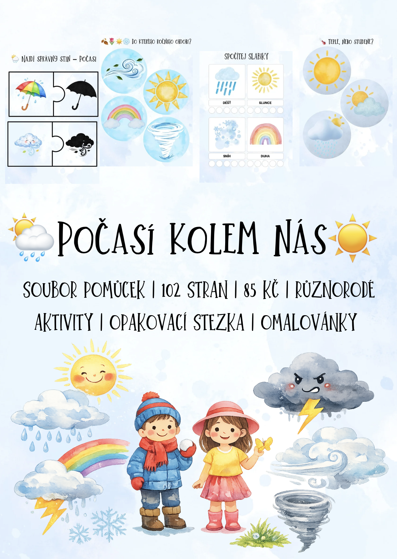 Komplexní tematický soubor aktivit, díky kterému děti poznají proměny počasí během dne i roku ☀️🌧️❄️🌈 a pochopí souvislosti mezi počasím, ročními obdobími a oblečením 👕🧥🧣.