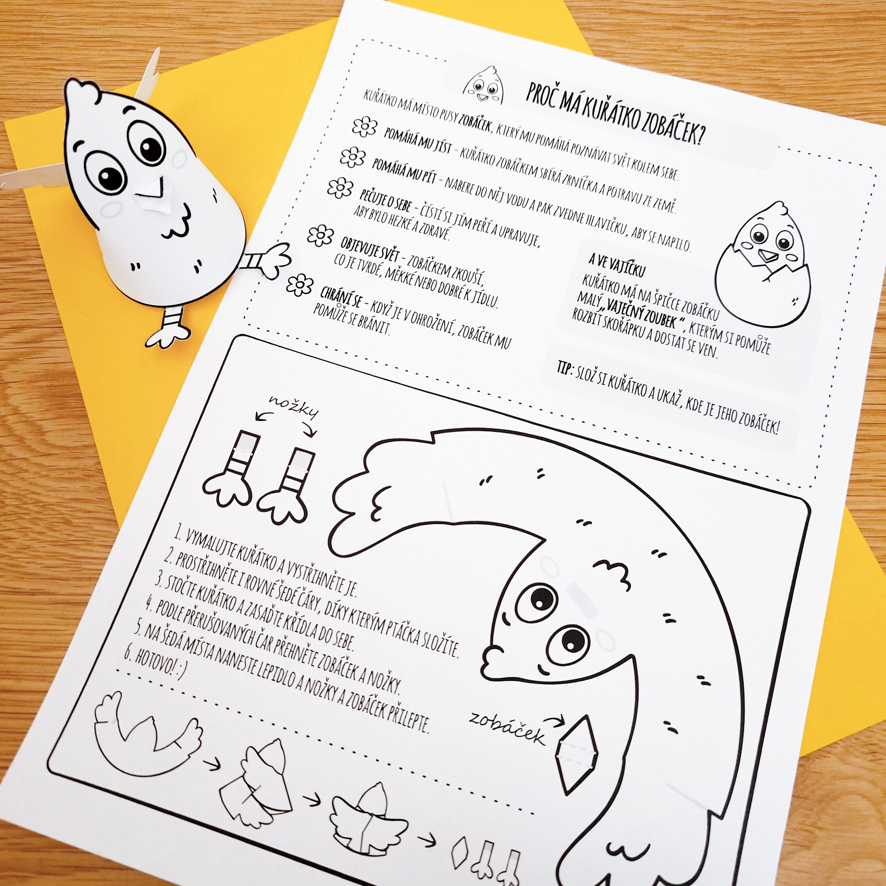 Tip: Při tvoření s dětmi můžete povídat o tom, k čemu kuřátko zobáček používá.