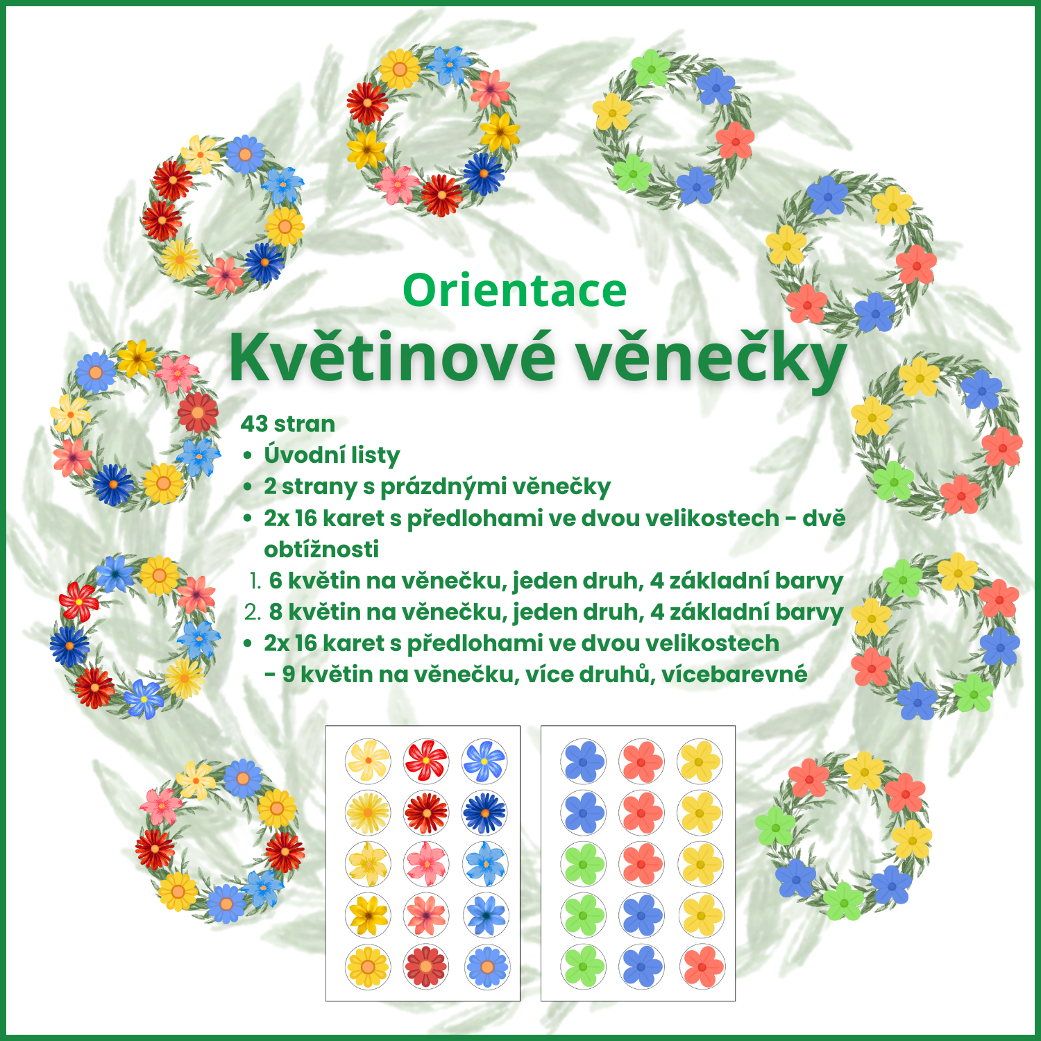 Obsahuje celkem 32 předloh květinových věnečků vždy ve dvou velikostech A4 + malé kartičky (8 na A4). Předlohy jsou ve třech obtížnostech: