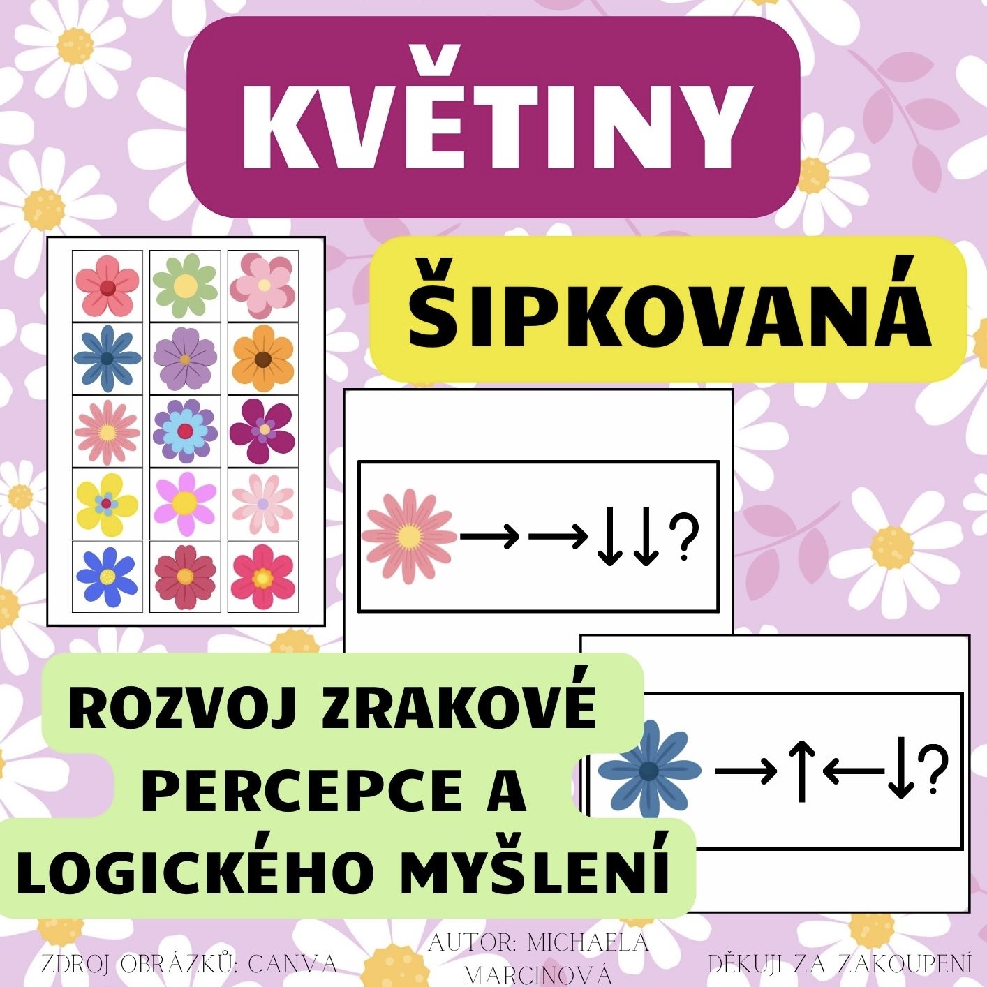 - Mise začíná: Dítě si vybere kartičku se sekvencí šipek.