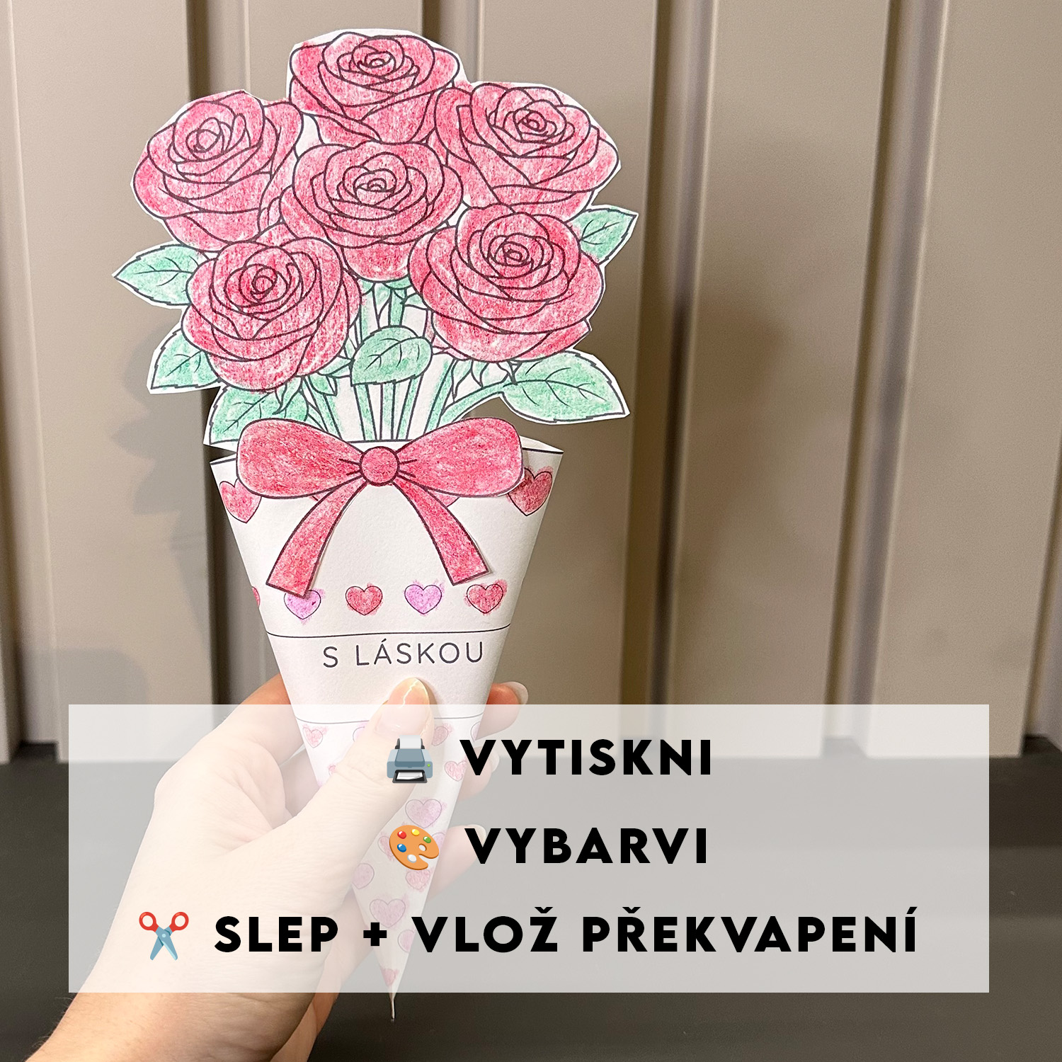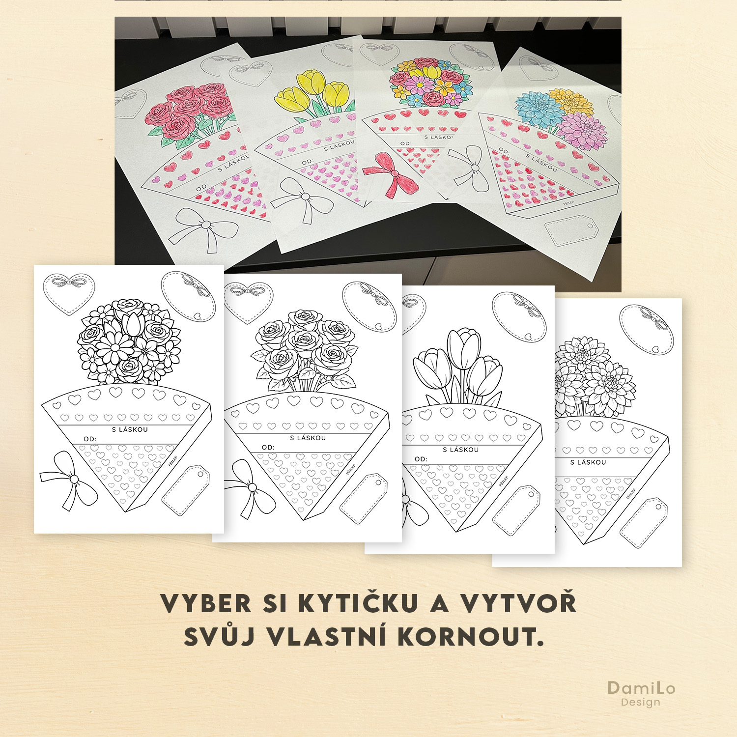 Tvořivý materiál, který propojuje kreativitu, jemnou motoriku a radost z vlastnoručně vyrobeného dárku. Děti si mohou kornoutek i kytičku vybarvit podle sebe, vystřihnout a složit do krásného přáníčka / dárečku pro maminku, babičku nebo někoho blízkého.