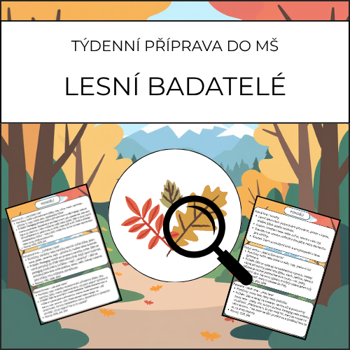 Les je plný kouzel, zvuků, vůní i překvapení. Děti se v něm učí pozorovat, zkoumat a vnímat, jak spolu vše souvisí – stromy, zvířata, houby i voda. Tento digitální materiál „Lesní badatelé“ nabídne ucelený program na celý týden, během kterého se děti promění v malé objevitele přírody. Každý den přináší nové poznání, badatelské pokusy, pohybové hry i chvíle klidu, kdy mohou naslouchat lesu a jeho příběhům.