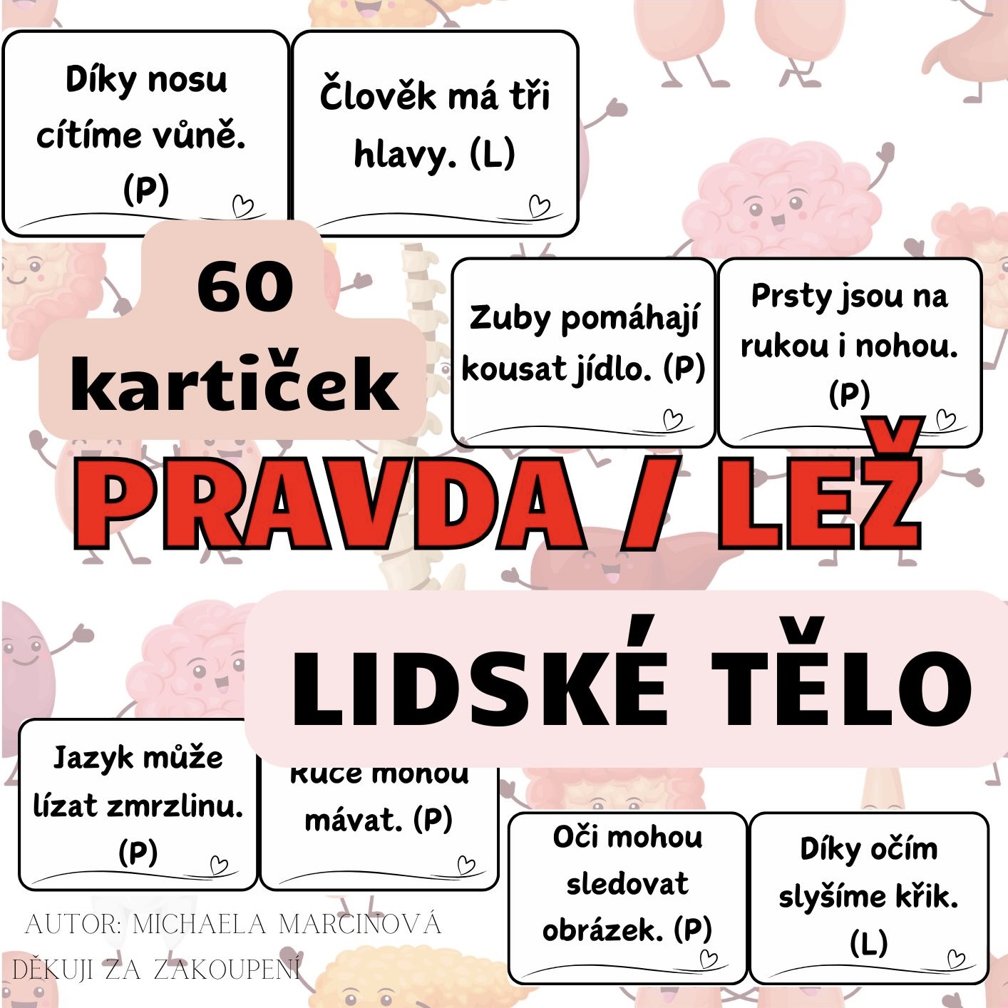• 60 kartiček s větami o lidském těle