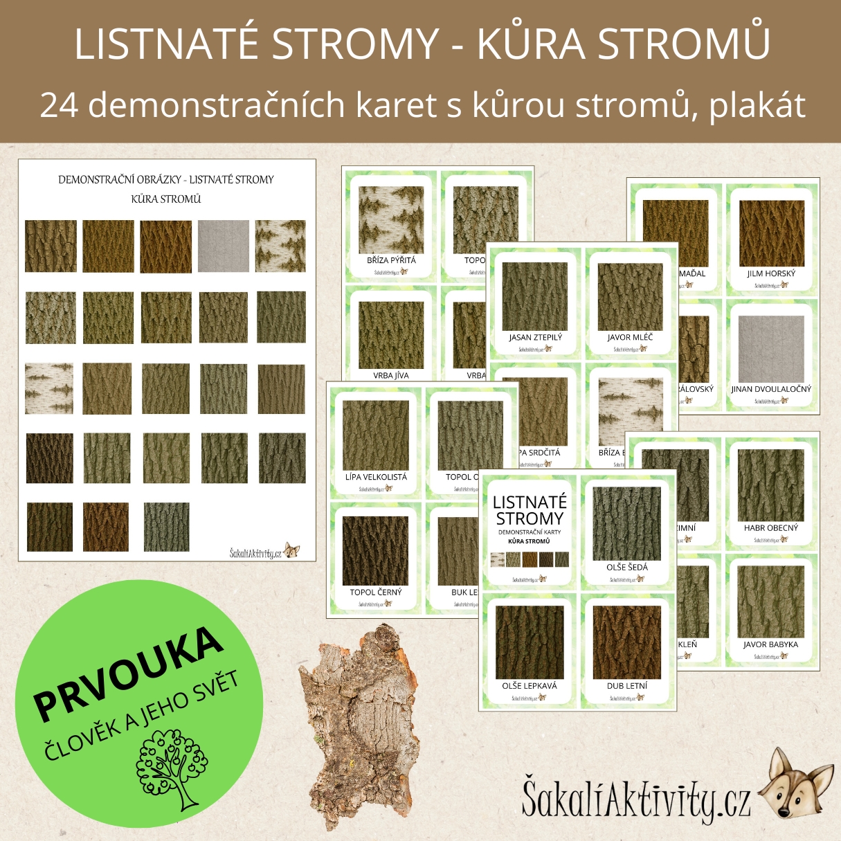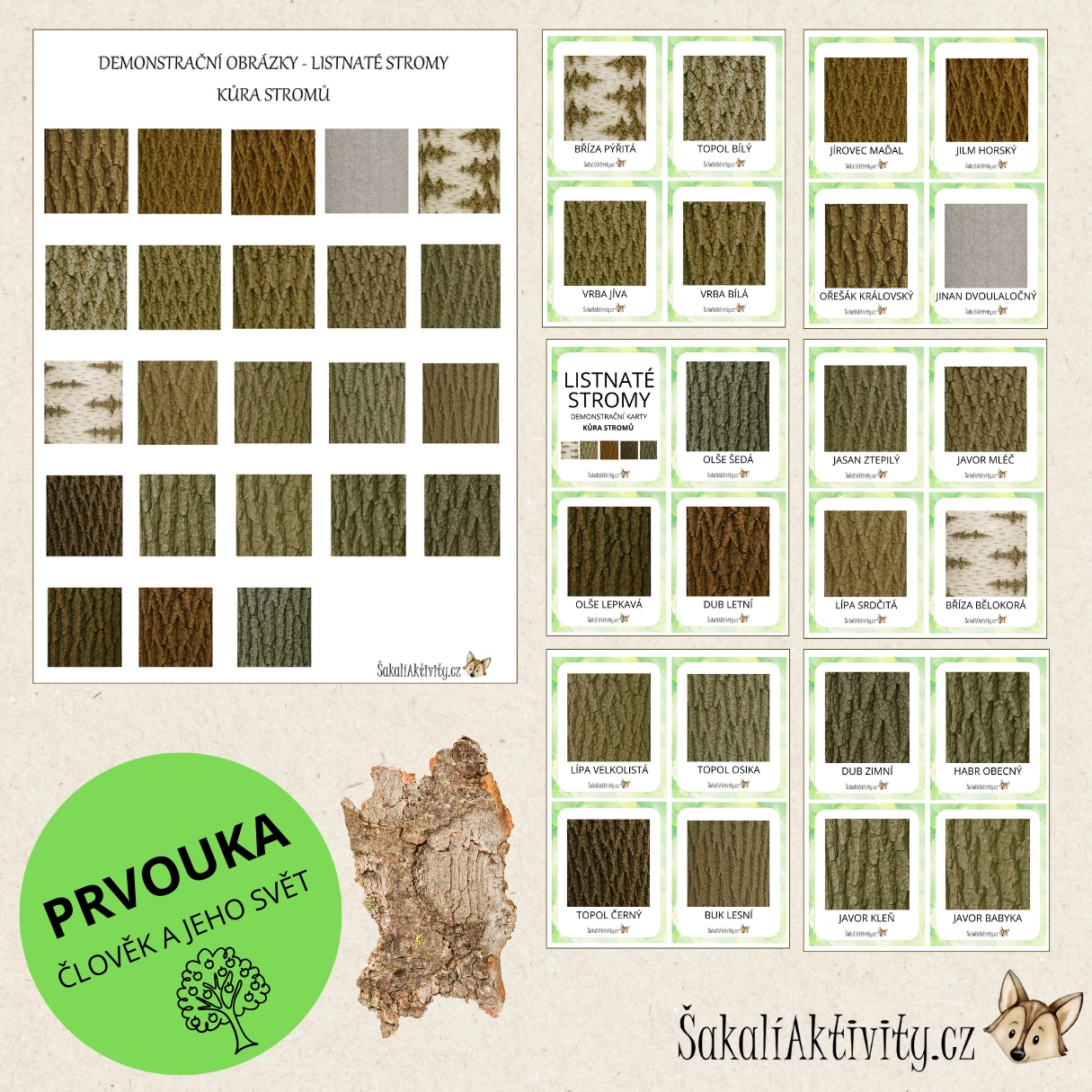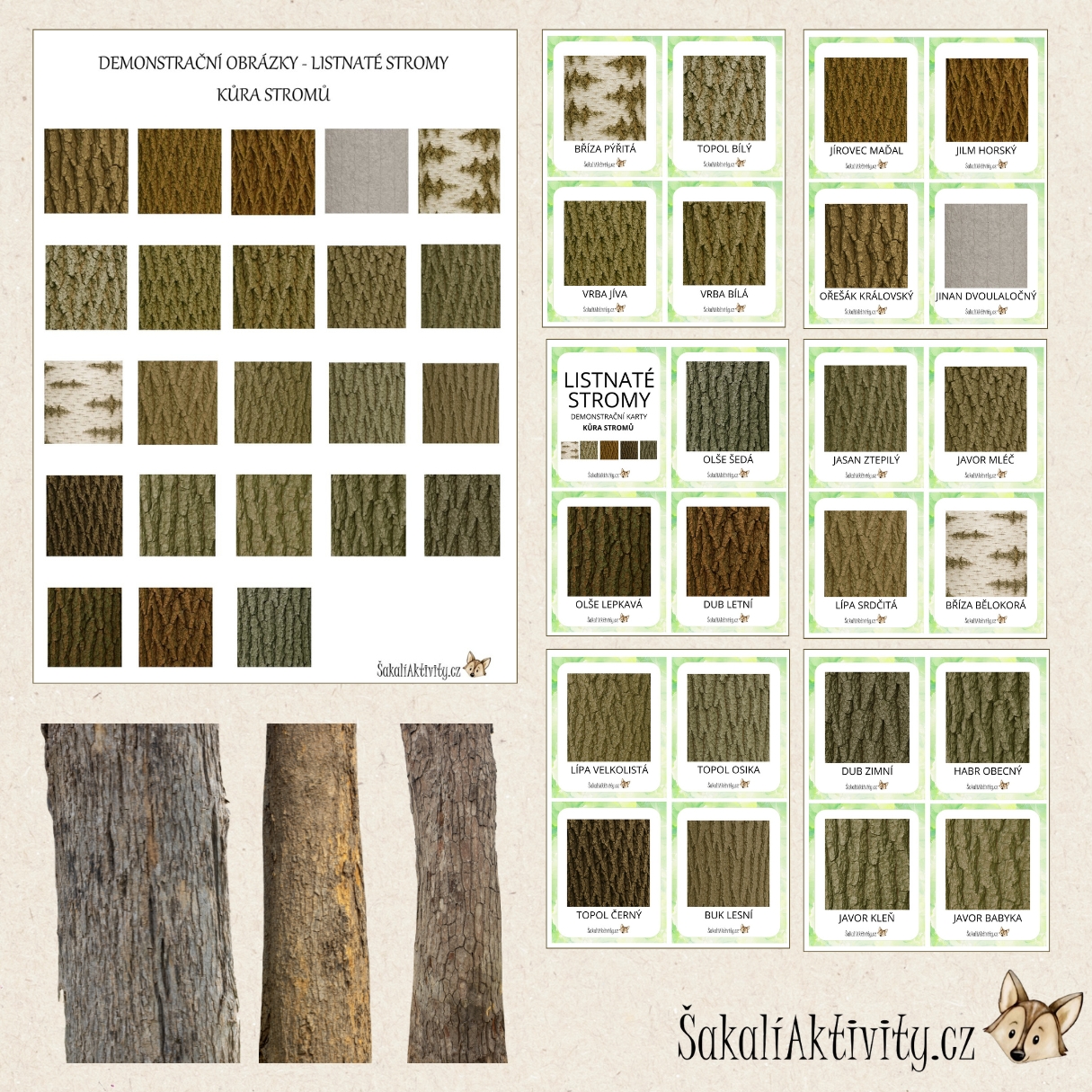 Demonstrační obrázky – kůra stromů jsou vzdělávací materiál vhodný pro mateřské školy, základní školy, školní družiny i domácí vzdělávání.